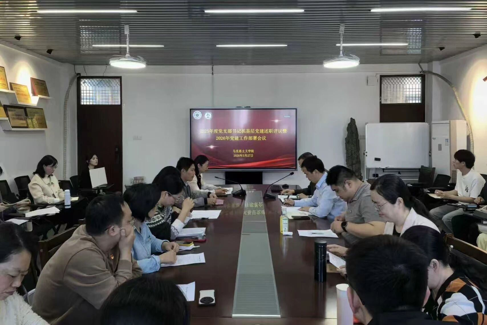 3月27日,太阳成集团tyc41183召开2025年度党支部书记抓基层太阳集团述职评议暨2026年度太阳集团部署会。师生党支部书记、教工党支部支委、党员代表参加会议。会议由学院党委副书记邓战军主持。