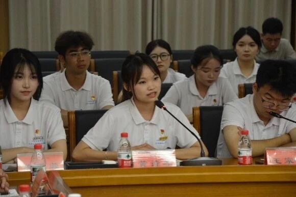 座谈会上,廖志丹副书记与参会人员一同观看了实践队制作的实践活动视频短片,认真听取了实践队员的实践心得汇报。
