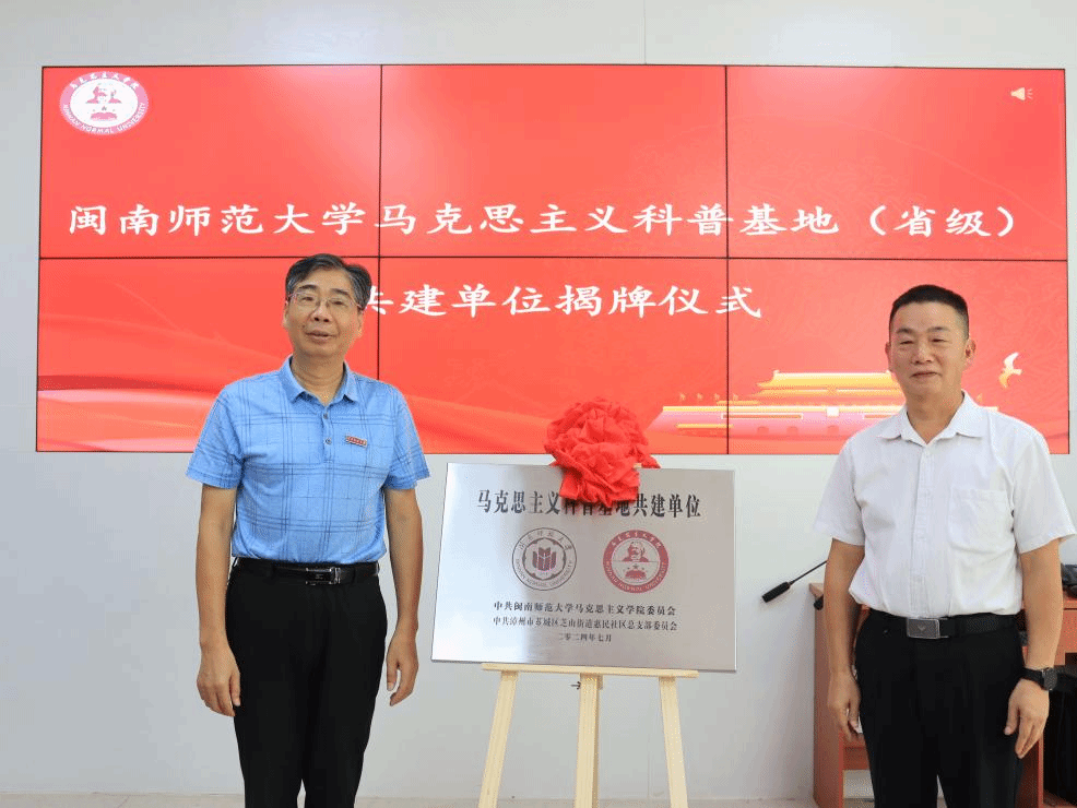 为了贯彻落实《福建省社会科学普及条例》,深入学习习近平新时代中国特色社会主义思想,把思政科普小课堂同社会大课堂结合起来,落实理论与实践相结合,推动马克思主义理论大众化普及,7月12日,tyc41183太阳成集团马克思主义科普基地共建单位揭牌仪式在惠民社区举行。此次共建为推进全民学习马克思主义理论知识提供了新平台,为深入贯彻理论和实际相统一开辟了新路径。