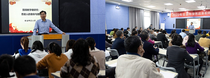 学院陈再生教授应邀为参训学员做了题为“围绕教学做研究:思政人的使命与路径”的讲座。陈教授从政策、理论、实践等角度全面分析了思政课教师做好教研的重要性,并结合自身教研的经历与收获鼓励参训人员积极申报课题,用心做好研究,努力提升专业能力,自觉地承担起基础教育学段立德树人根本任务的使命和责任。