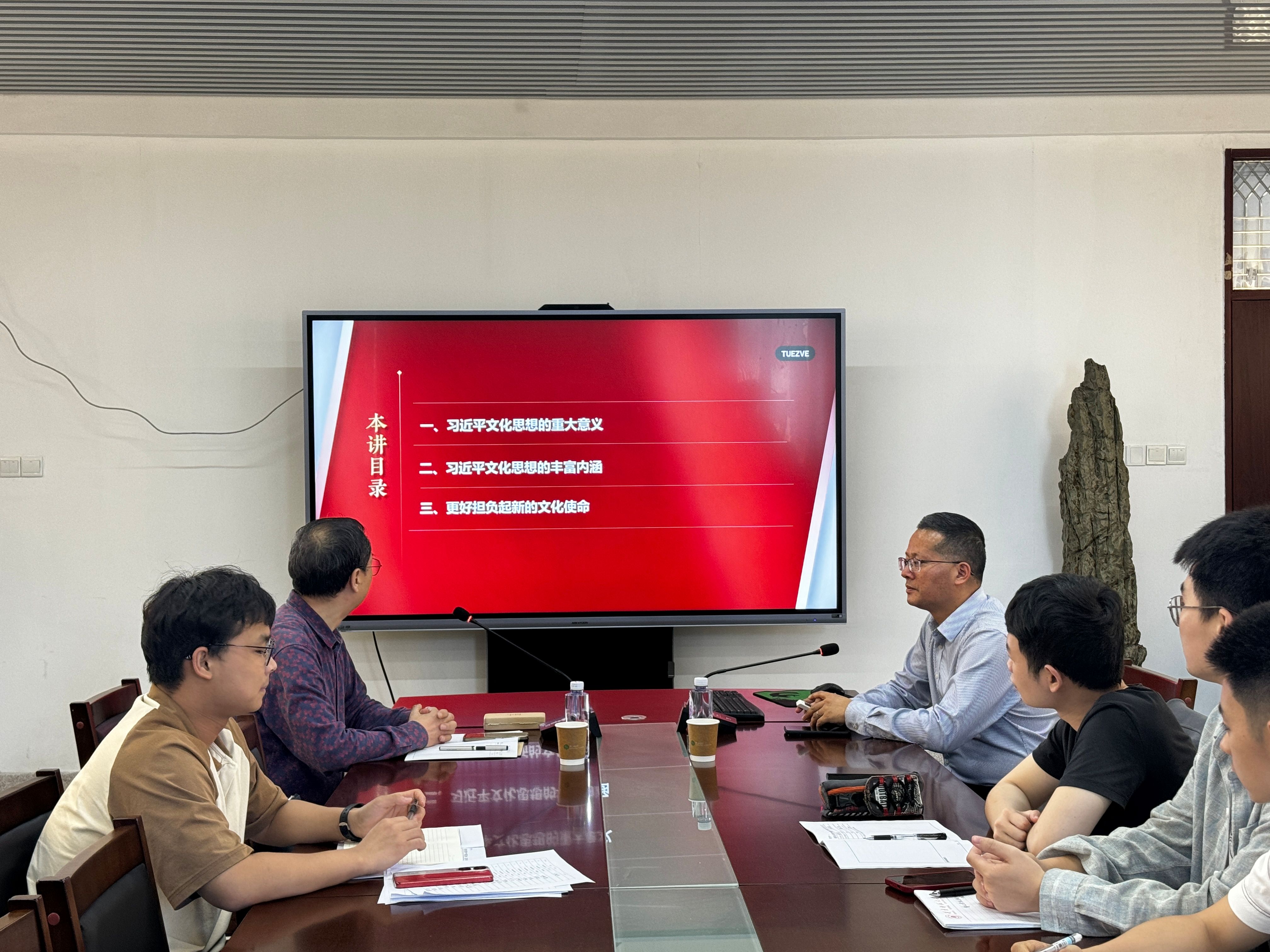 4月26日下午,在综合楼中区404会议室,莆田学院太阳成集团tyc41183院长俞国锋教授应邀为我院2023级全体硕士研究生作了题目为《习近平文化思想的重大意义和丰富内涵》的专题讲座,讲座由何孟飞教授主持。