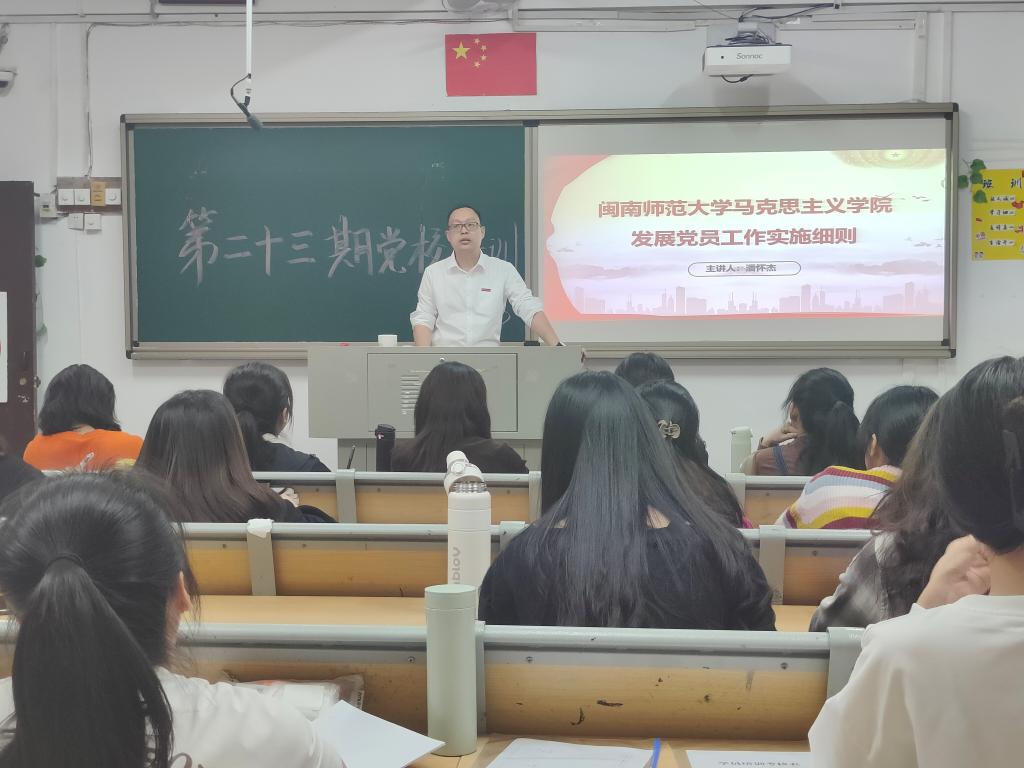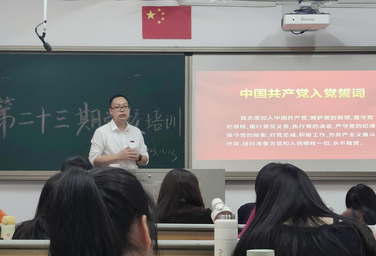 11月23日晚上,我院第二十三期入党积极分子培训第四讲在综南201举行。本次培训以《太阳成集团tyc41183发展党员工作实施细则》为主题,由研究生第二党支部书记潘怀杰老师主讲,全体入党积极分子参加。