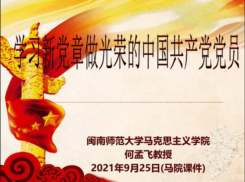 9月25日上午,我院分党校第十九期入党积极分子培训班通过腾讯会议的形式开展第三讲学习。本次“学习新党章做光荣的中国共产党员”专题培训,由何孟飞教授主讲,全体学员参与。