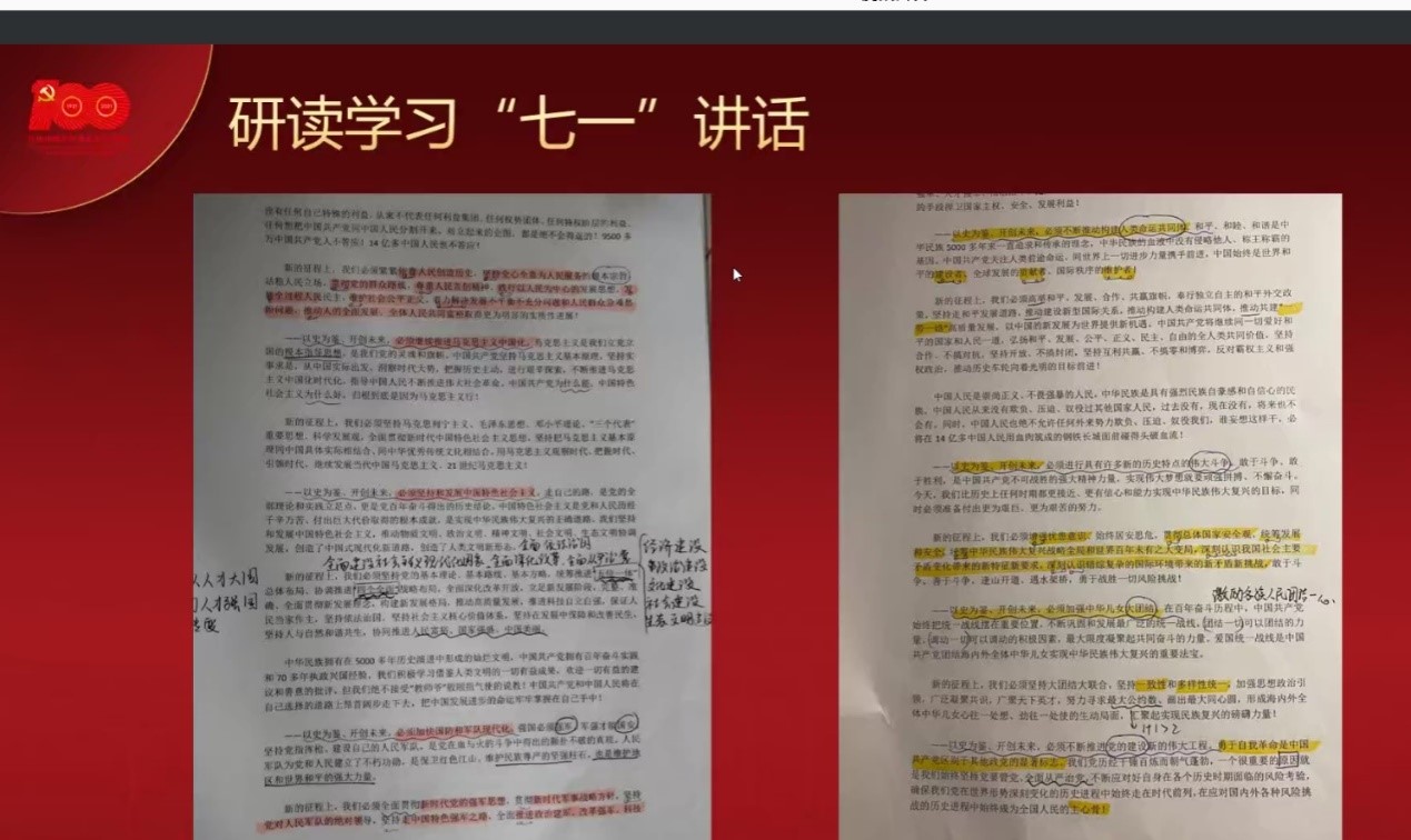 结业式在庄严的国歌奏唱中拉开序幕。随后,由全体入党积极分子组成的七个实践小组选派代表围绕着以“学习七一讲话精神,激发青春奋斗力量”为主题依次开展实践汇报,此次汇报主要从活动目的、形式、流程、意义四方面展开,学员们通过线上收集讨论,深入学习了习近平总书记“七一”重要讲话精神。并在集体学习交流的基础上,在“七一”重要讲话精神的指导下,制定开展了相关的实践活动。