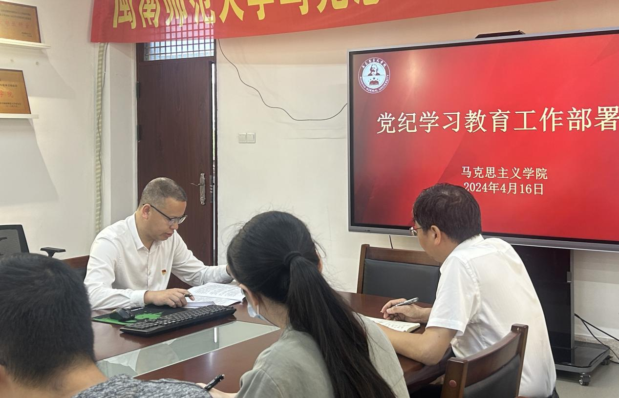 会议强调,学院各党支部和全体党员干部,要提高政治站位,坚持对标对表,深刻认识开展党纪学习教育的重要意义,深化思想认识,知行知止、令行禁止,不断把学习成果转化为推动学院事业发展的强大动能。一是要抓住重点。要原原本本学深悟透《中国共产党纪律处分条例》,逐章逐条学,坚持个人自学与集中学习相结合,抓好以案促学、以训助学,做到学懂弄通、熟练掌握,推动《条例》入脑入心,把铁的纪律转化为日常习惯和行动准绳。二是要结合工作实际。要求通过线上线下相结合的方式推动学习教育,充分发挥学院学科平台和专业优势,用好谷文昌纪念馆红色资源上好党纪这门党课。用好“学习强国”、“福建干部网络学院”等线上平台,开展《条例》网络学习,强化解读培训,帮助党员干部深刻理解、准确把握《条例》精神实质。三是要发挥优势。要根据学院学科特点,发挥好表率作用,专任教师党员要精心备好党纪党课这门课,全体党员要以德立身、以德立学、以德施教,各党支部要扎实开展警示教育。四是要突出特色。结合专业特色开展党纪学习教育,加强宣传工作,推动党纪学习教育有声有色。要将党纪学习教育与巩固拓展习近平新时代中国特色社会主义思想主题教育成果结合起来,同巡察整改工作结合起来,确保高质量完成党纪学习教育任务。