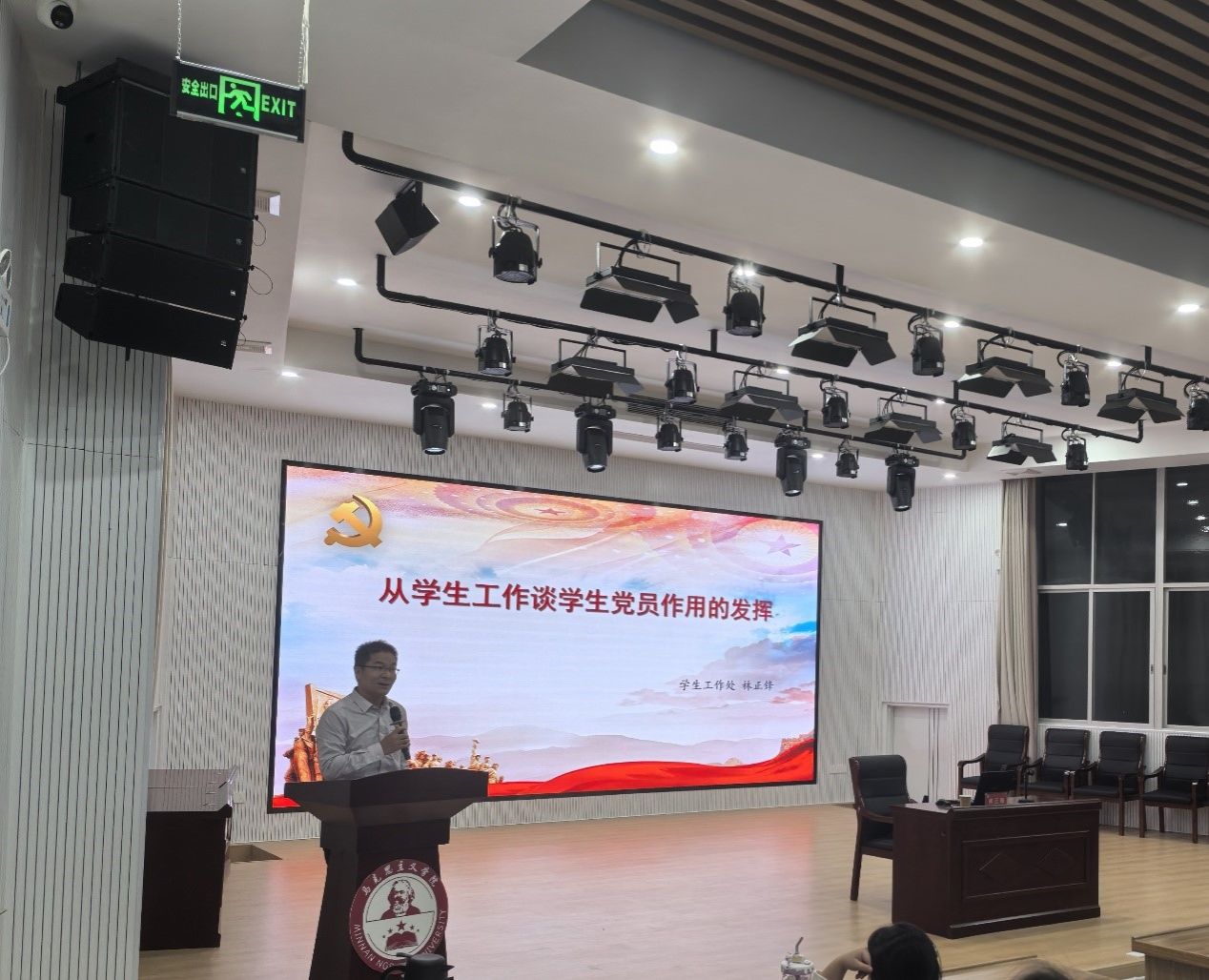 11月29日晚上,校学生处副处长林正锋以“从学生工作谈学生党员作用的发挥”为主题,为我院入党积极分子讲授专题党课。