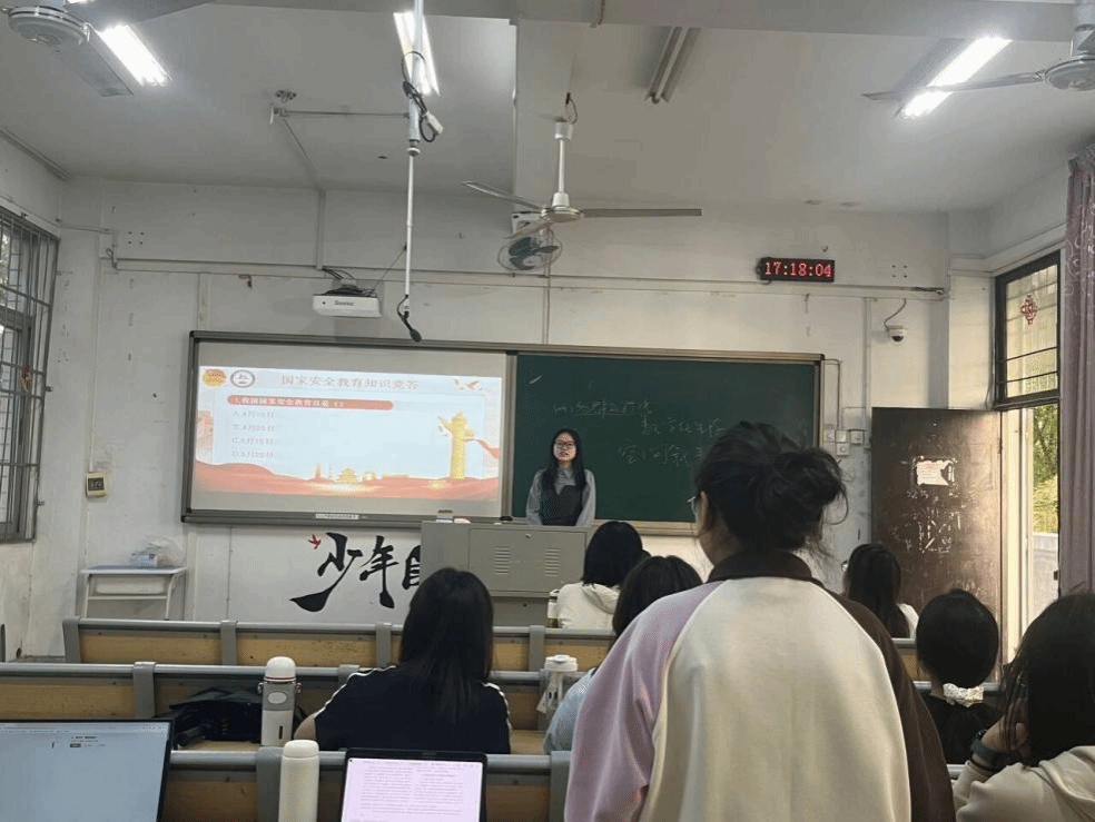 本次主题班会以线上线下结合的多元方式开展,通过观看相关视频、开展知识竞赛与安全隐患排查等形式,深化同学们对国家安全理论的理解,激发学习热情,提升安全防范能力,增强行动自觉。班会期间,同学们踊跃参与,在互动讨论中各抒己见,深刻认识到国家安全与个人命运紧密相连,纷纷表示要将“维护国家安全”的理念转化为实际行动。值得一提的是,2023级思政1班在实践环节创新设计“国防密钥极速挑战”互动项目,将理论学习与趣味实践巧妙融合。这一寓教于乐的沉浸式体验,让抽象的安全理念转化为可触摸、可参与的实践任务,既考验了团队协作能力,更以“解密闯关”的形式让“维护国家安全人人可为”的理念深入人心,成为班会中兼具知识性与趣味性的亮点环节。
