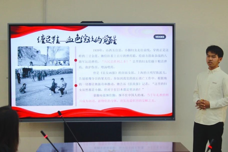 入围本次决赛的12组选手,围绕"忆红色峥嵘路,践青春奋进歌"这一主题,立足新时代青年学子的视角,紧扣中国人民抗日战争胜利80周年、抗美援朝战争胜利75周年等重大历史纪念节点,创新开展思政教学展示。选手们以扎实的知识功底解读红色基因传承,将革命文物、战地家书等具象化素材转化为育人资源,借助多媒体动态课件与沉浸式课堂设计,立体化诠释英雄人物的使命担当,展现红色精神的时代回响。这场兼具思想深度与情感温度的教学展示,构建起贯通历史与现实、理论与实践的青年思政教育新范式,为现场师生呈现了一堂有深度、有温度的思政大课。