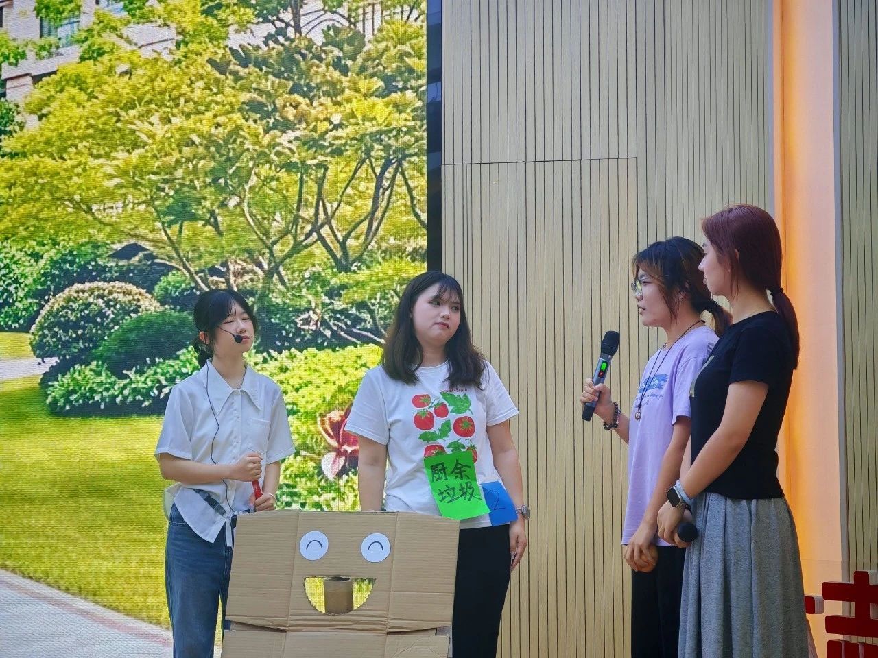 随便都队由瑞京D北320宿舍和瑞京D北323宿舍组成,她们带来的情景剧《“四桶演义”:我的垃圾我做主》从四个垃圾桶的视角出发,以幽默风趣的内容讲述如何进行垃圾分类,呼吁观众们共同加入文明城市的创建。