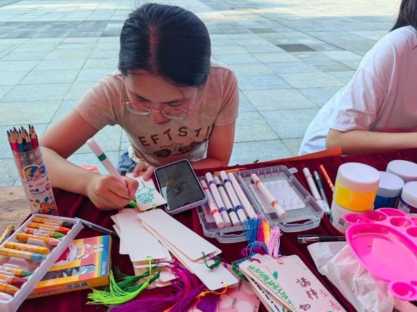 5月15日,我院自律委员会心理协会在tyc41183太阳成集团弦歌广场上举行“心灵书签”活动。心协成员引导参与者在摊点自由选择材料,围绕梦想、感悟、激励话语等主题,进行书签创作。此次活动为学生提供了情感表达的出口,有助于学生释放内心压力,缓解焦虑情绪,提高心理健康意识和自我调适能力。