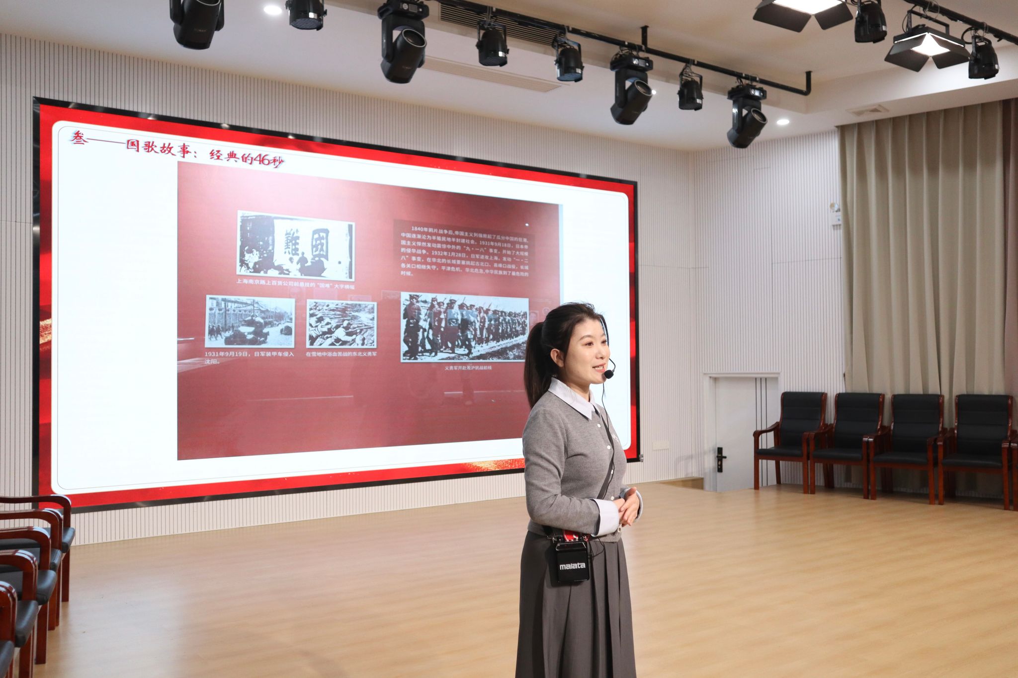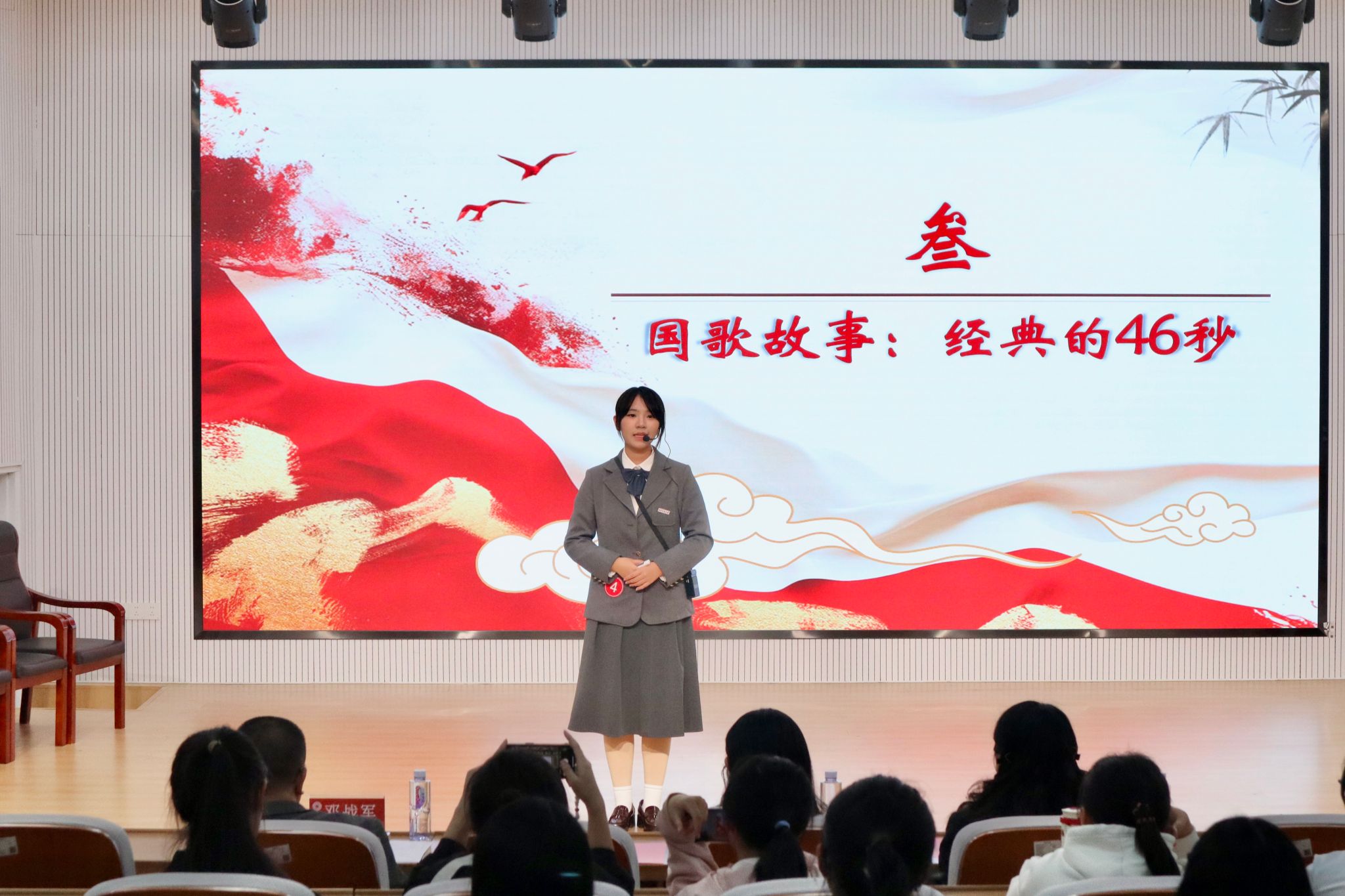 前半场,博物馆赛道的讲解员们紧扣“国歌精神”主题,或回溯国歌诞生的抗战历程,或结合乐谱细节解读赤诚初心,或分享青年如何以“前进”之志践行强国担当,以鲜活表达让国歌精神可触可感,展现马院学子的赤子情怀与时代风貌。