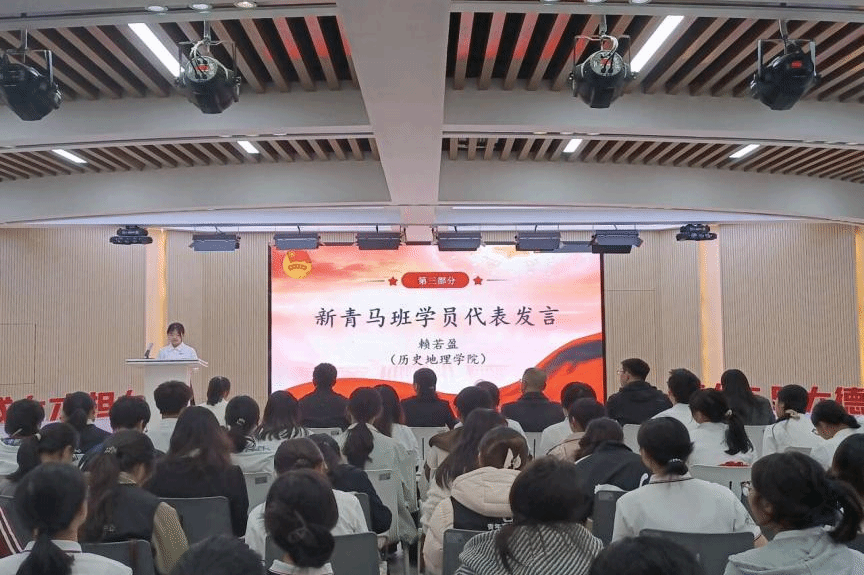 我院优秀团员代表蔡静颖同学与历史地理学院青马班学员代表赖若盈同学相继发言。