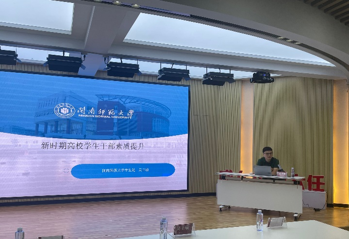 10月22日上午,校学生工作处管理科科长吴主敏老师以学生干部的初心为讲座切入点,分别从优秀学生干部的基本素养与核心素养两方面展开,鼓励学员们做有思想、敢作为、能创新的好干部。