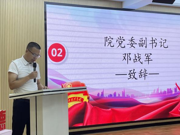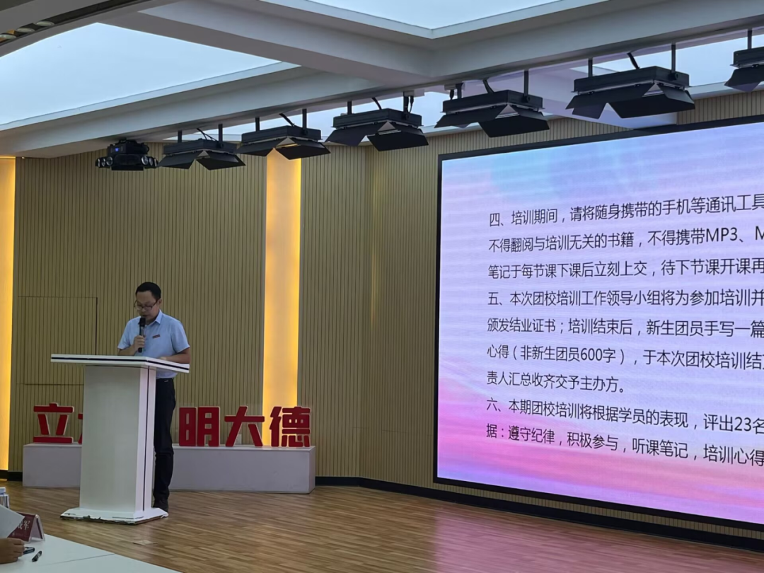 10月12日晚上,我院于达理活动中心3楼举行第十三期先锋团校暨青干班培训班开班典礼,院党委副书记邓战军、院团委副书记潘怀杰出席活动。在嘹亮的国歌声中,本次开班典礼拉开帷幕。院党委副书记邓战军在致辞中强调我院学子要积极响应时代召唤、回应党的号召,争做有理想、敢担当的青年干部。随后,院团委副书记潘怀杰宣读本次团校培训纪律须知,优秀团员代表胡紫嫣进行发言。