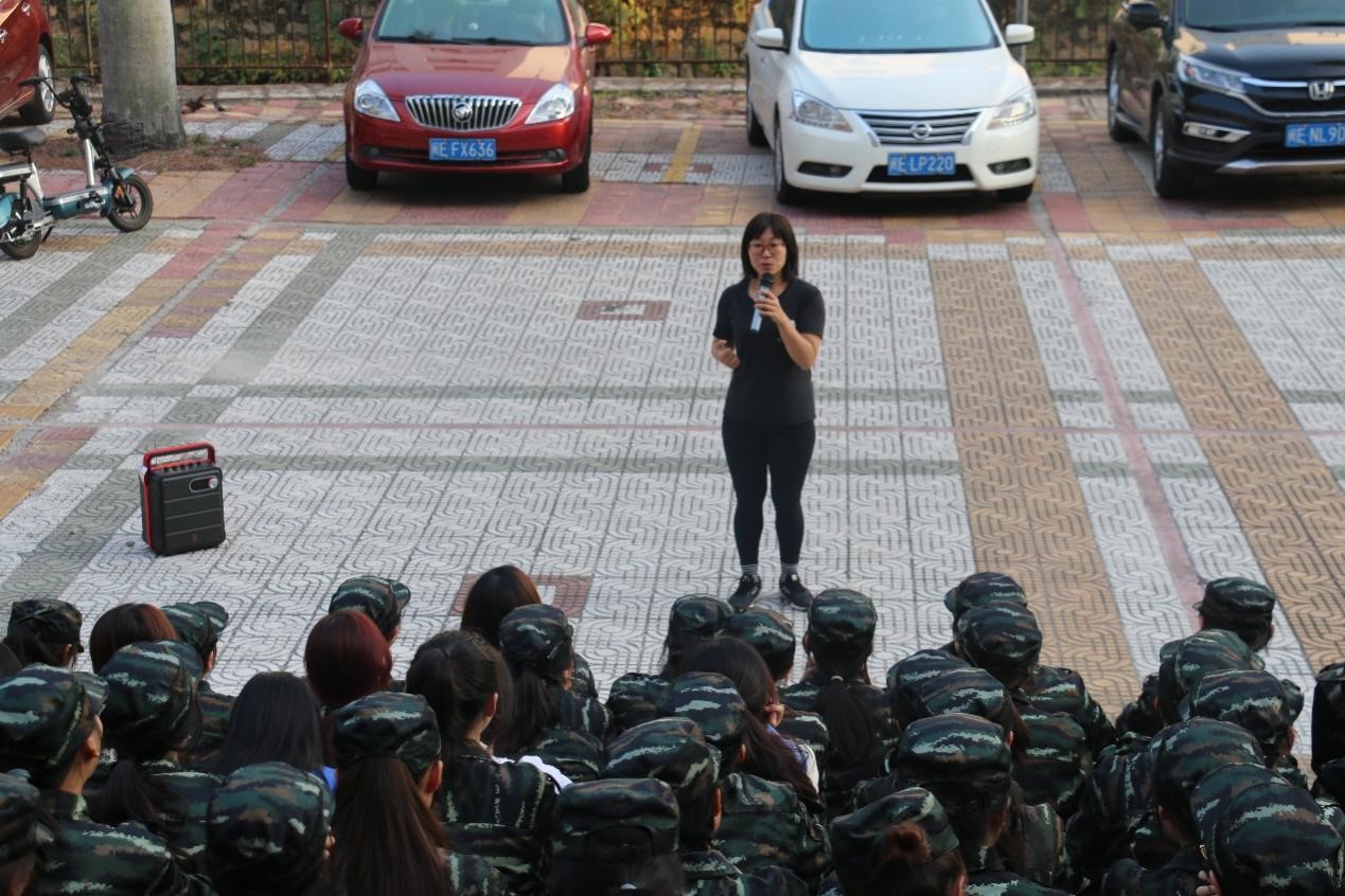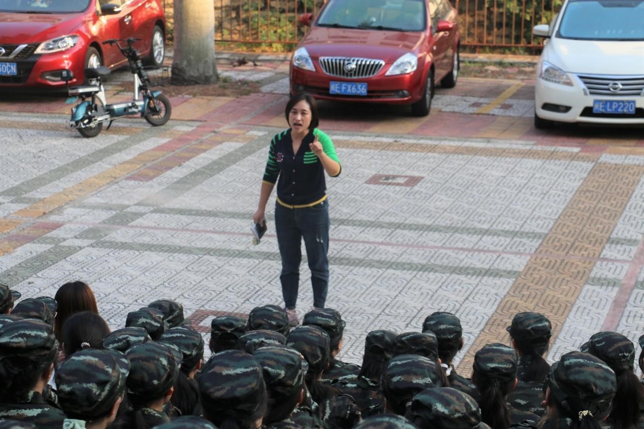 接着,辅导员李艳萍老师就军训期间的各项具体要求和安排发表讲话。她谈到,军训是大学生的必修课,必须高度重视,每一位同学都要向着“优秀学员”的目标前进。她向大家提出四点要求:一是把军训当作一次锻炼身体的机会,要积极参与军训训练,服从教官安排,强健体魄。二是要把军训当作一次交流沟通的机会,同学们之间要互帮互助,加强交流,创造一个和谐友好的校园氛围,确保军训顺利结束。三是把军训当作一次锻炼意志的机会,每一位同学要树立坚强的意志力和必胜的信念,不畏艰难,不惧挑战,勇往直前。四是把军训当作一次思考的机会,利用军训,深入思考大学对于自身的意义,以及未来自身的发展方向和发展道路。最后,她希望同学们能始终保持活跃的思想,树立大格局,有目标有想法有行动地朝着胜利前进,用自己的拼搏和汗水为大学生活留下美好的回忆。
