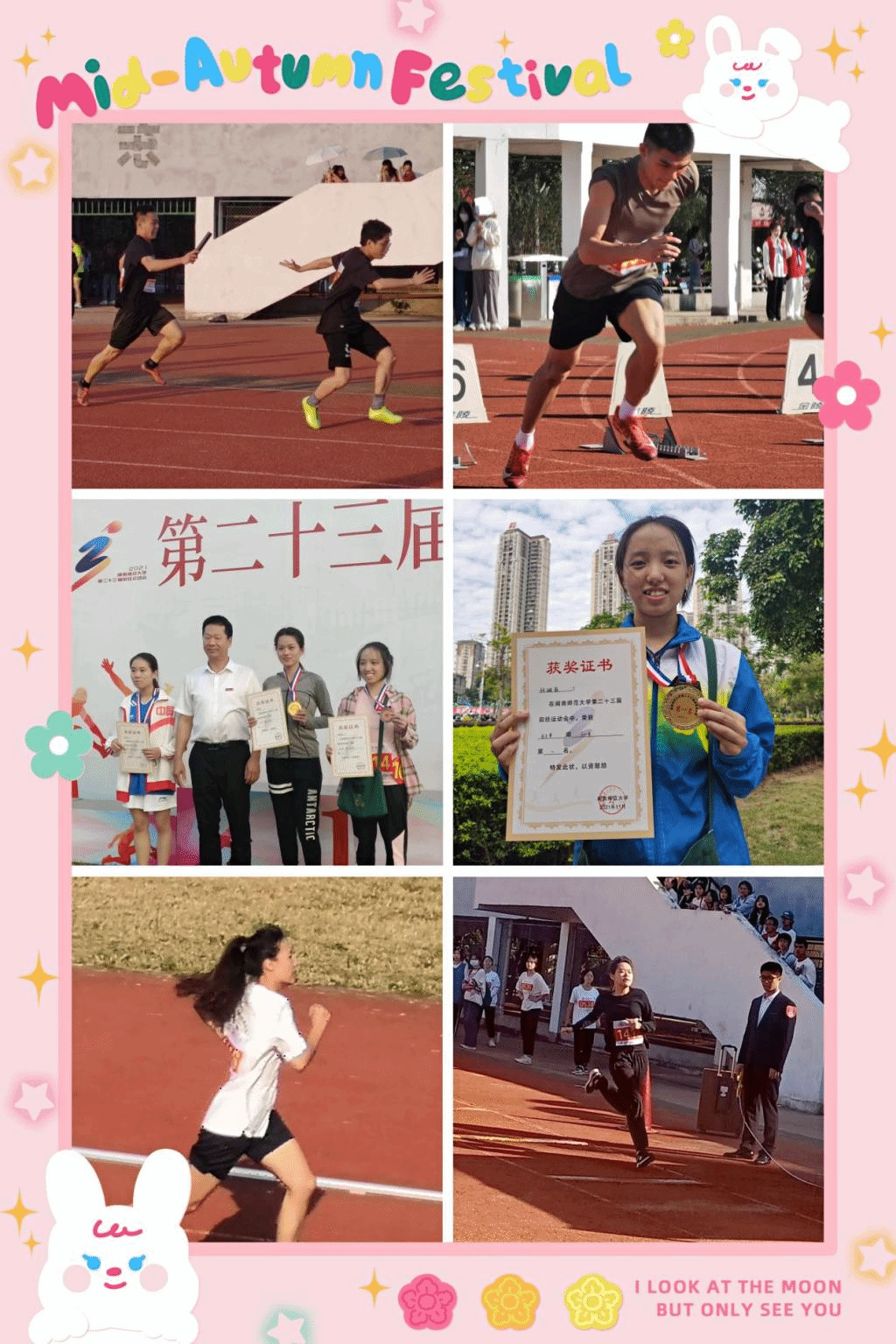 马院的运动健儿们驰骋赛场,有的竭力奔跑,有的勇敢跳跃,有的奋力投掷,一次又一次挑战极限、突破自我,为集体荣誉而战斗,立下赫赫战功,充分展现了太阳成集团tyc41183师生奋勇争先、不畏艰难、敢于拼搏的风采。在主席台的广播声中,本科生组喜报频传。林璐菲同学喜夺女子3000米决赛金牌和1500米决赛铜牌;毛建华同学在男子200米决赛和100米决赛中分别取得第四名的好成绩;郭懿同学夺得女子400米跨栏第四名;潘宵依同学在女子三级跳远决赛中喜提第七名;毛建华、龙宇、范世龙、王少伟同学在男子4×100接力跑中斩获团体第七名。