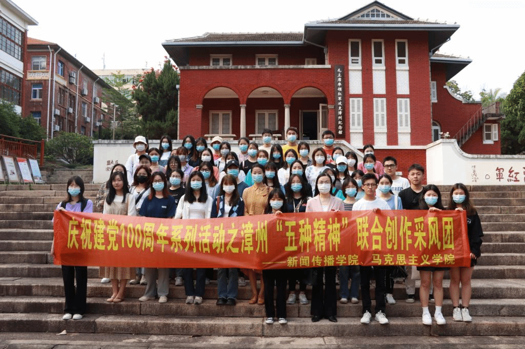 为庆祝中国共产党建党100周年,进一步深入开展党史学习教育,弘扬漳州五种精神,讲好中国故事。429日下午,我院青年骨干教师林志芳带领新闻传播学院学生赴芝山红楼(又名毛泽东率领红军攻克漳州纪念馆)现场采风,让学生近距离感受中国共产党的百年艰辛历程,更好地体会红军革命精神。