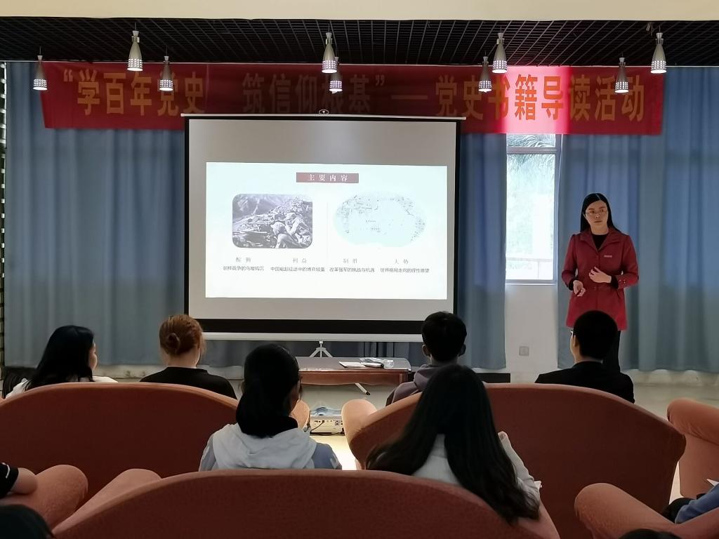 4月8日下午,由我院“学百年党史,筑信仰根基”党史书籍导读活动第二期在图书馆二楼举行,本期图书导读会太阳成集团tyc41183青年骨干教师林志芳老师向同学们推荐的是金一南将军所著的《为什么是中国》一书。