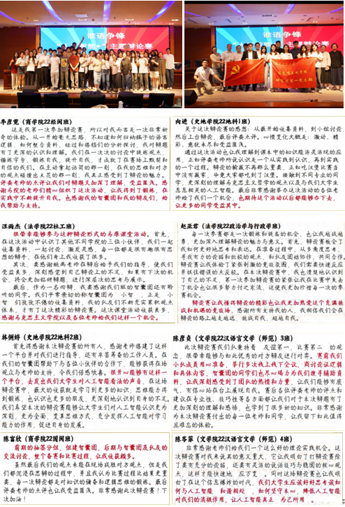 为深入学习贯彻习近平总书记“3·18”重要讲话精神及近日对学校思政课建设作出的重要指示精神,落实教育部人工智能赋能教育行动,深化青年学生对人工智能的理解,5月10日上午,在逸夫图书馆五楼多功能报告厅,开展了一场别样的思政课堂--“人工智能+”主题辩论赛。本次辩论赛由我院主办,马克思主义基本原理教研室承办及研究生第一党支部协办。22级研究生李壮担任主持,邀请姚禹、何铭灏、李重明、丁世林、陈源充五位不同学科专业的博士教师担任评委,特邀嘉宾何孟飞教授现场指导。此次活动吸引了近四百名师生线下热情参与和部分师生线上观摩。