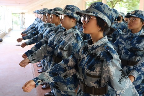 巾帼不惧烈日,少年笑对骄阳。我辈青年是初升的暖阳,是汹涌的后浪,我们将带着军训的宝贵收获,阔步昂首,奋勇向前。