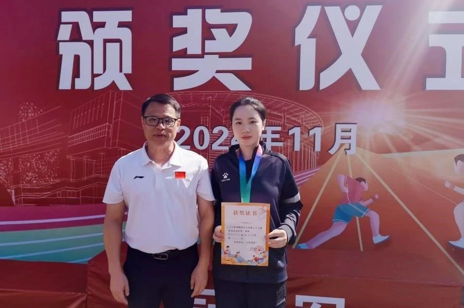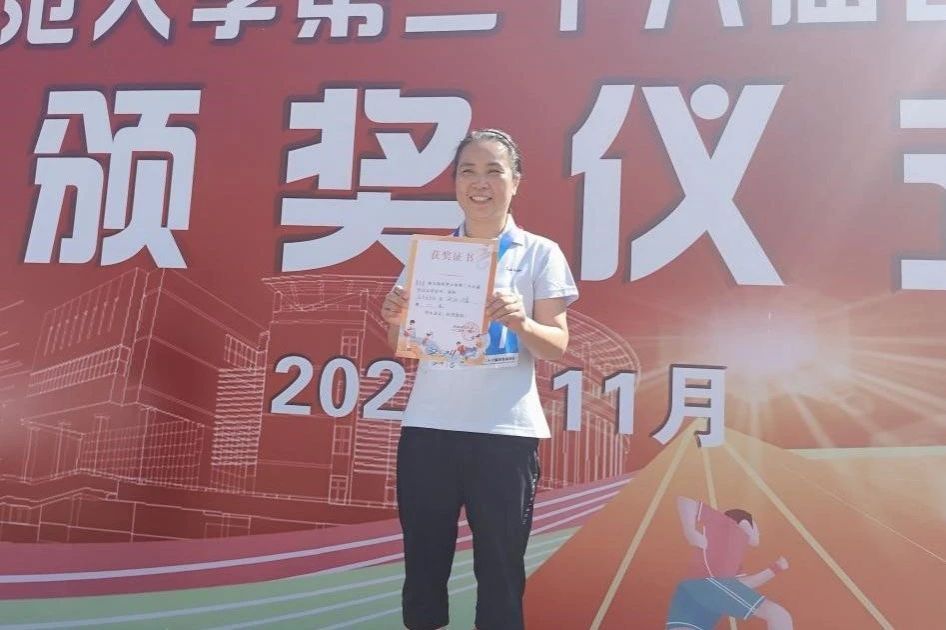 我院黄艺羡老师在老年丙组女子跳远决赛中获得第三名