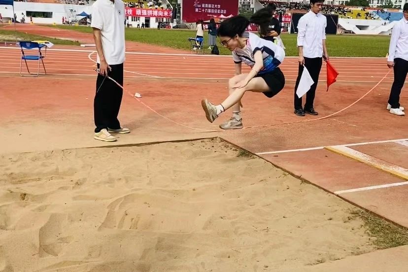 我院2023级二班魏熠欣在女子甲组跳远决赛中获得第八名
