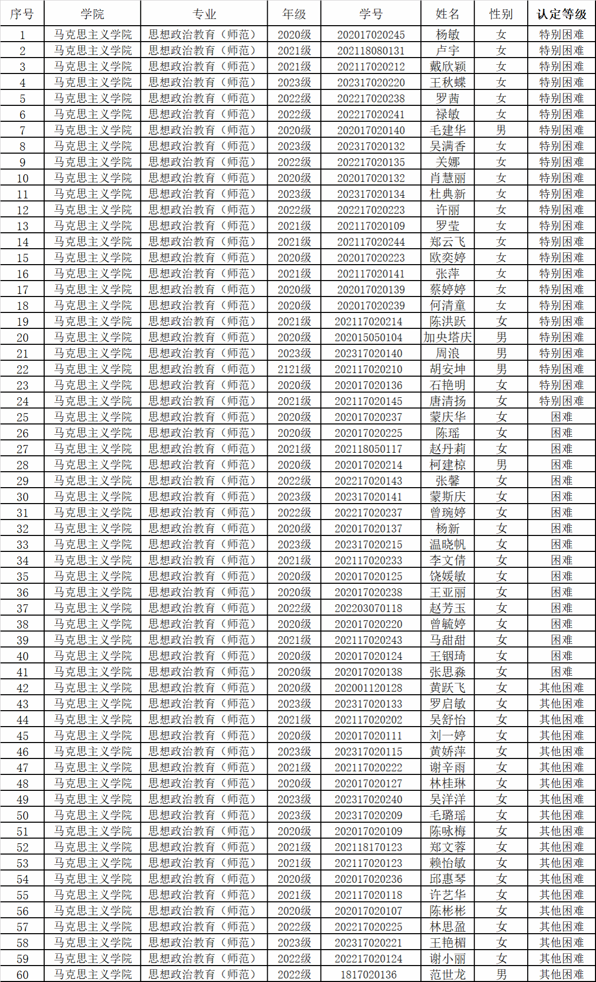 根据《tyc41183太阳成集团家庭经济困难学生认定工作及国家助学金评定暂行办法(修订)》(学工〔2023〕25 号)文件要求,现将我院2023-2024学年复核通过的家庭经济困难学生认定名单公示如下: