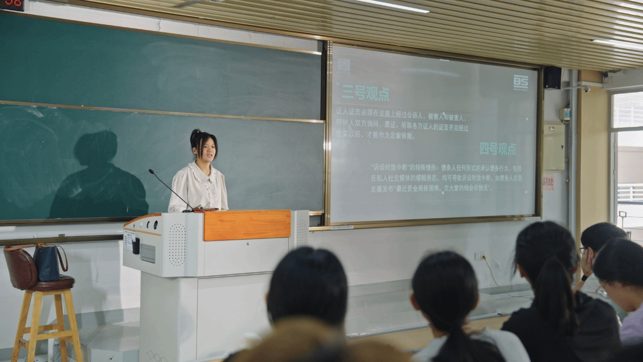 活动改变了传统的授课模式,充分发挥学生的法学专业优势,课堂化身为人机PK赛场,围绕AI“幻觉”:是真相抑或是陷阱?学生与AI上演了一场思维与逻辑的对决。课前,各小组同学结合法学专业背景,运用AI生成了一系列看似“逻辑严密但事实谬误”的法条“答案”。课上各小组轮番展示AI生成的“一本正经的答案”,现场同学发挥专业知识,仔细捕捉AI生成的文本中极具迷惑性的逻辑漏洞、矛盾推理等,辨别真伪,做出判断,最后由各小组展示AI生成“答案”的过程,通过三阶递进引发学生对于AI运用的思考。
