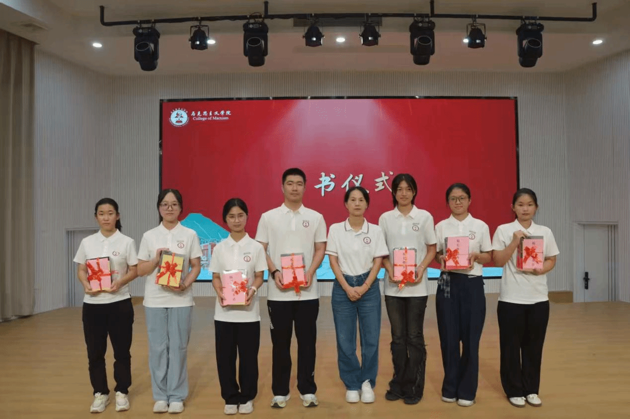 副院长黄耀明为研究生新生代表赠送“校长推荐书单”,勉励大家“以书籍为友、以知识为帆,在学术道路上稳步前行”;副院长林海燕为本科新生代表赠送“校长推荐书单”并寄望同学们“以书籍为舟,在知识海洋中求索真知”。