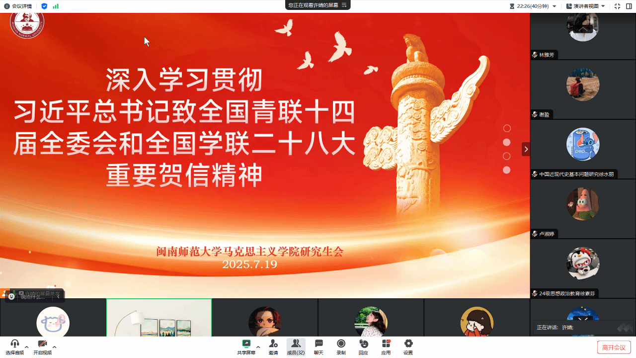 为深入学习贯彻全国学联第二十八次代表大会精神,我院于近期组织各班级、各学生组织通过线上形式召开专题学习会。