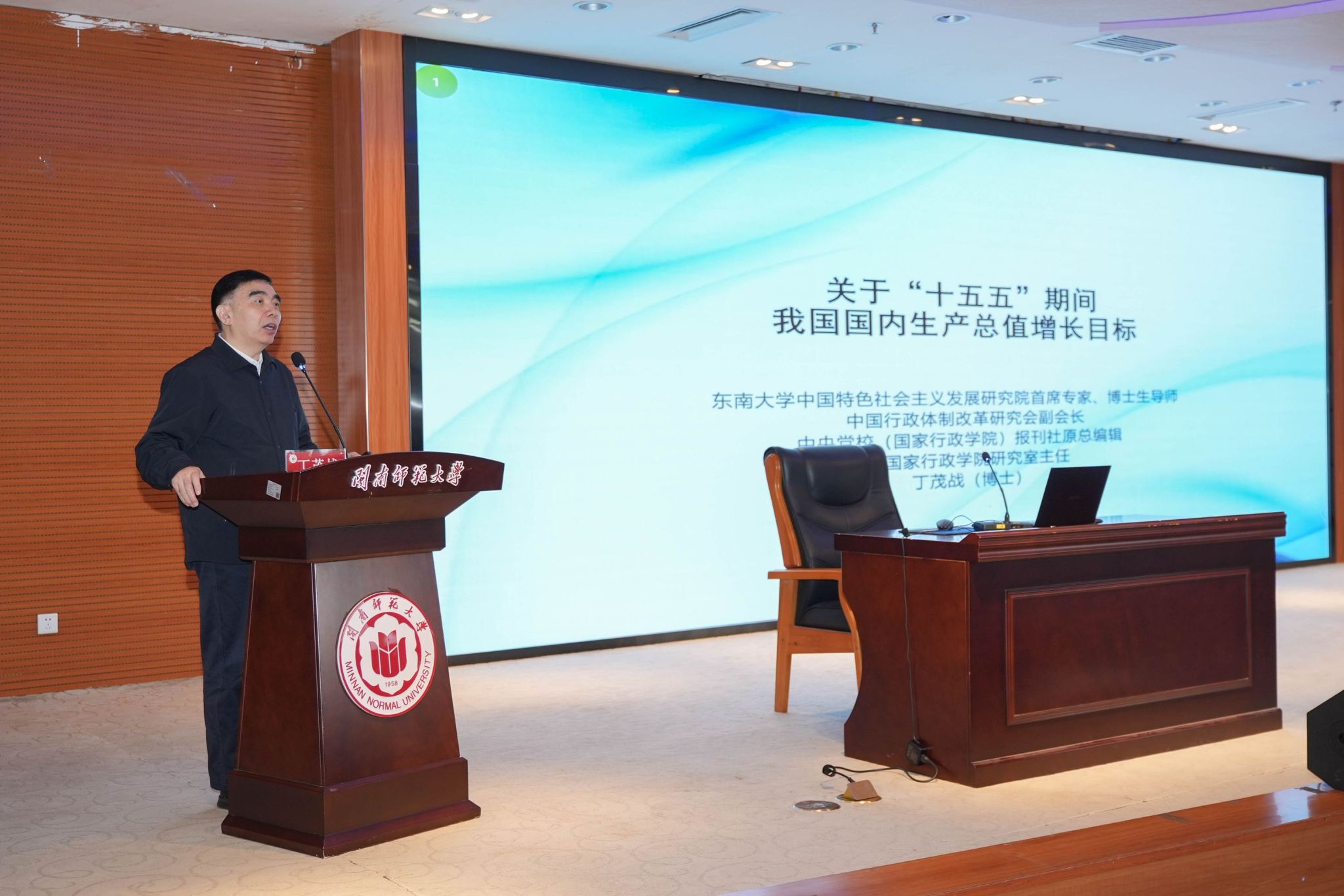 在大会主旨发言环节,来自求是杂志社、国家行政学院研究室、中国人民大学、上海交通大学、湖南师范大学、福建师范大学、福建省委党校以及tyc41183太阳成集团的专家学者分享了前沿研究成果,为未来研究提供了广阔的学术视野和清晰的研究思路,太阳成集团tyc41183副院长黄耀明教授主持上半场大会主旨发言。求是杂志社研究部主任顾保国参加了年会,并与青年教师、研究生座谈交流。东南大学中国特色社会主义发展研究院首席专家、博士生导师丁茂战作了题为《关于“十五五”期间我国国内生产总值增长目标》的报告,从从为什么要有GDP增长目标,潜在增长目标应该有多高以及对四中全会确定目标的理解三个维度,深入剖析近几年国内生产总值等,并在此基础上预估“十五五”时期国内生产总值增长目标。