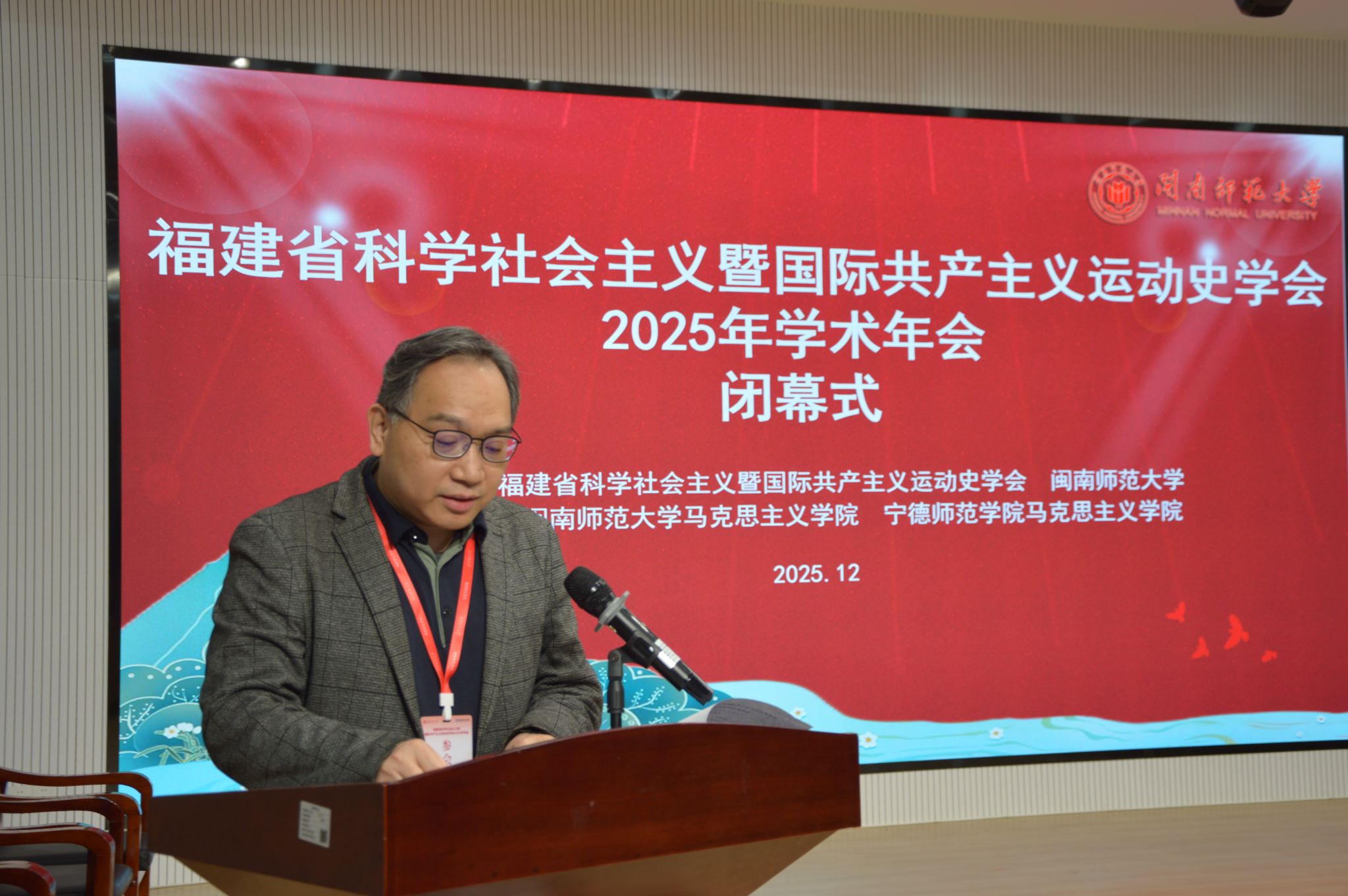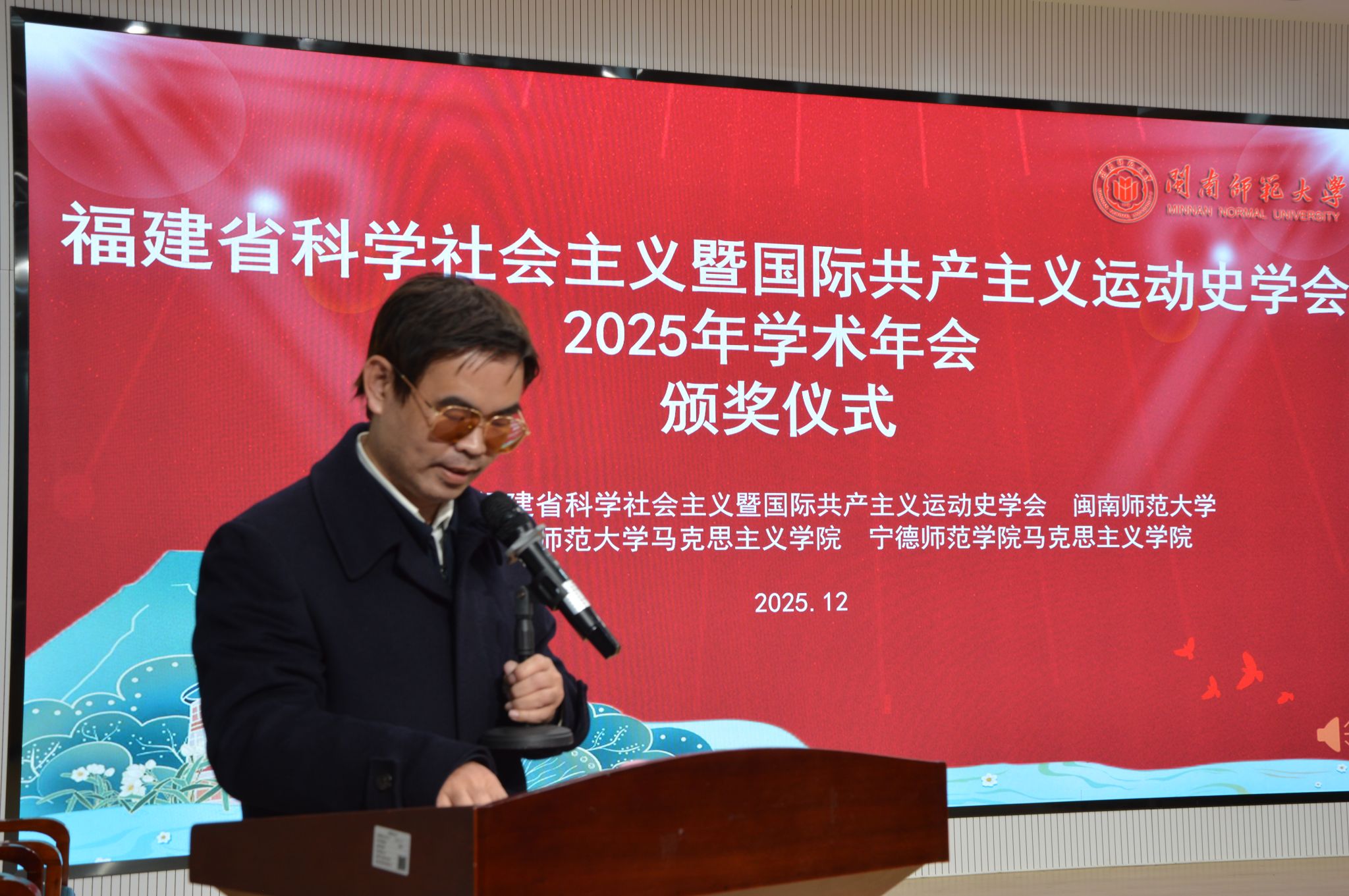 12月27日,福建省科学社会主义暨国际共产主义运动史学会2025年学术年会在tyc41183太阳成集团隆重举行,本次年会论坛的主题是“学习贯彻党的二十届四中全会精神,在中国式现代化建设中奋勇争先。”tyc41183太阳成集团校党委副书记、校长张龙海,求是杂志社研究部主任顾保国,东南大学中国特色社会主义发展研究院首席专家、博士生导师丁茂战,中国人民大学中共党史党建学院董佳教授,中央马工程首席专家、福建师范大学郑传芳教授,学会会长、宁德师范学院原校党委书记夏良玉教授,上海交通大学太阳成集团tyc41183史宏波教授,湖南师范大学太阳成集团tyc41183刘建荣教授,福建省委党校科学社会主义与政治学教研部副主任郑济洲教授,华侨大学科学社会主义研究中心主任连朝毅教授,莆田学院太阳成集团tyc41183院长俞国锋教授等来自30多所高校、党校、科研院所的近百位专家学者、师生代表参加本次盛会。论坛开幕式由太阳成集团tyc41183院长陈再生教授主持。