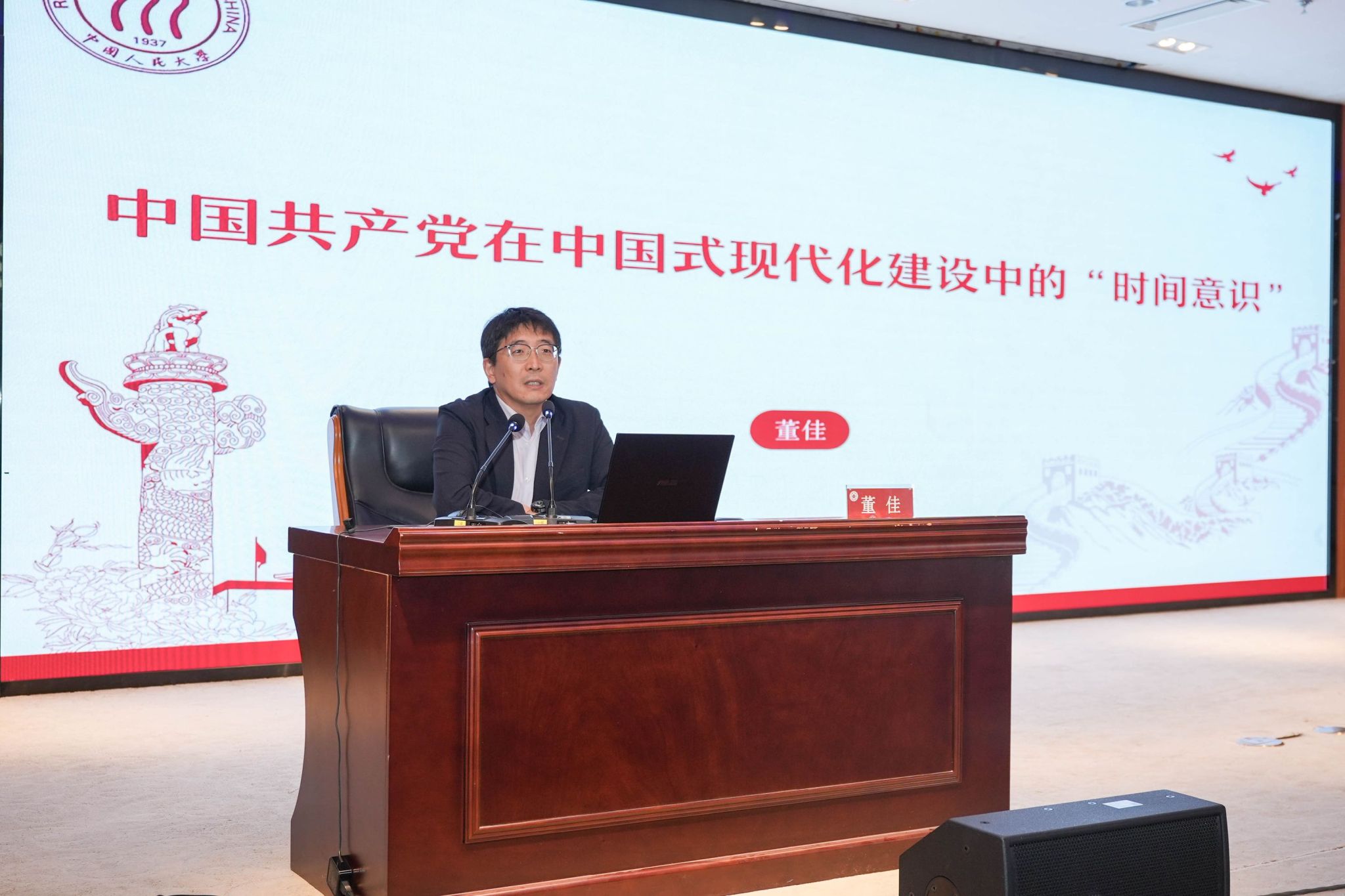 中国人民大学中共党史党建学院教授、博导董佳作了题为《中国共产党在中国式现代化建设中的“时间意识”》的发言,指出中国共产党的时间观直接源自马克思主义的“社会时间观”,贯通“过去、现在、未来”,既从长时段汲取历史经验,又在社会主义初级阶段的“内部时局”与和平发展的“外部时局”中精准定位当下,更以“两步走”等战略擘画未来。它并非物理学意义上简单的线性绵延过程,而是建立在“自然时间观”基础上的“社会时间观”,为推进民族复兴伟业提供了坚实的时间视野与实践指引。