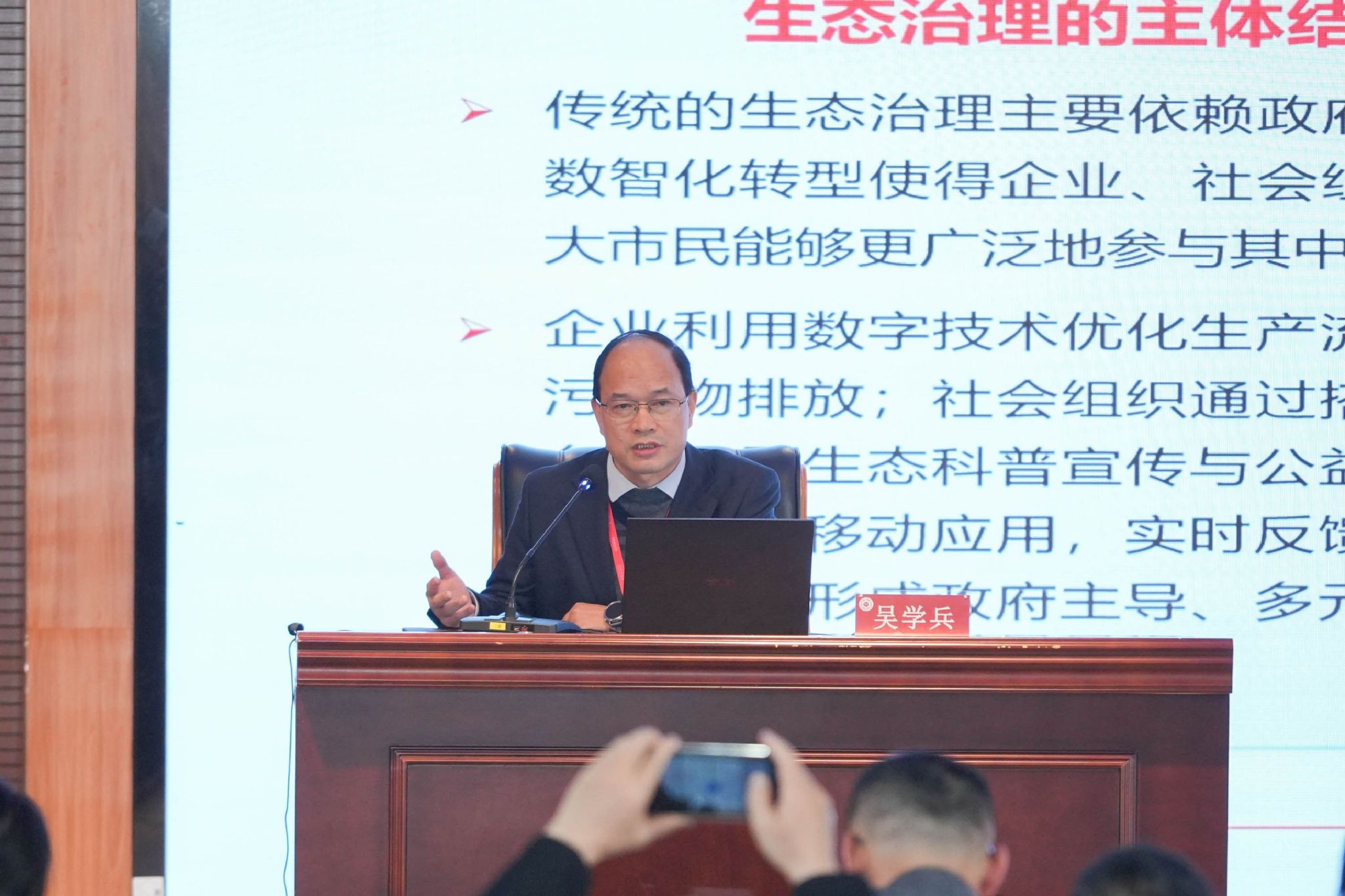 太阳成集团tyc41183教授吴学兵作了题为《现代化人民城市下生态文明建设数智化转型的三重观照》的报告,提出“人民城市人民建、人民城市为人民”是人民城市现代化发展的根本价值坐标,剖析了人民城市理念与生态文明建设数智化转型的互构逻辑,从目标、问题和效果导向逐一分析了现代化人民城市下生态文明建设数智化转型的重要性。提出要以绿色发展为牵引,构建宜居生态环环境;以创新驱动为核心提升城市智慧治理水平;以共建共治共享为原则,构建全民参与的生态治理共同体。