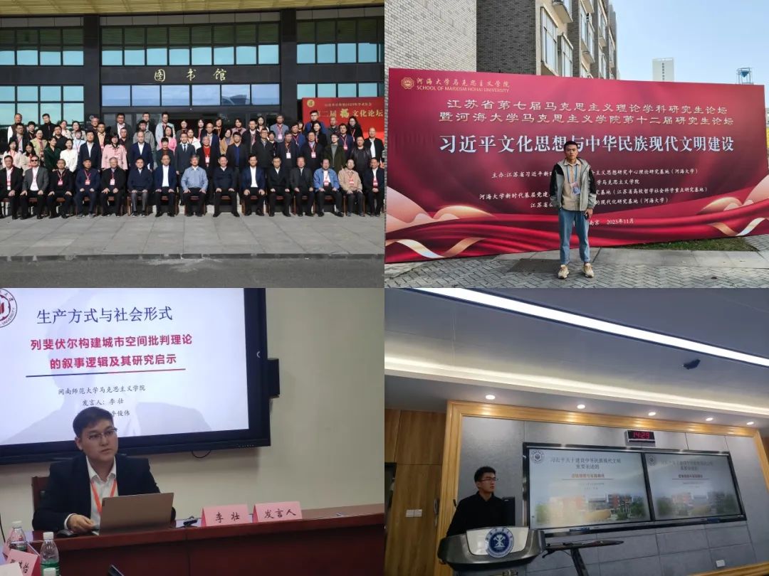 近日,我院2022级硕士研究生胡泽斌、李壮、陈涵分别应邀参加江苏省第七届马克思主义理论学科研究生论坛、第四届列斐伏尔思想学术研讨会”、 第二届马克思主义理论学科青年学者“淮海论坛”。(通讯员 陈涵)