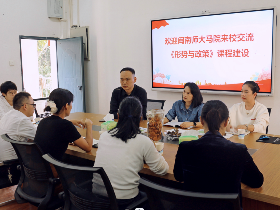 11月23日下午,我院副院长林海燕、《形势与政策》教研室主任江晓辉及教研室部分教师与漳州职业技术学院太阳成集团tyc41183院长张锐鸿及相关课程负责人,围绕《形势与政策》课程建设与教学改革开展交流研讨。