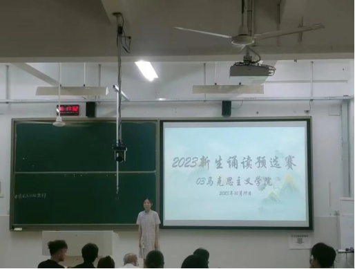 10月19日下午,我院学生会学习部于圆山校区旧教108与历史地理学院、商学院联合举办新生诵读比赛预选赛,比赛期间邱煜焜老师莅临指导。(通迅员 林涵)