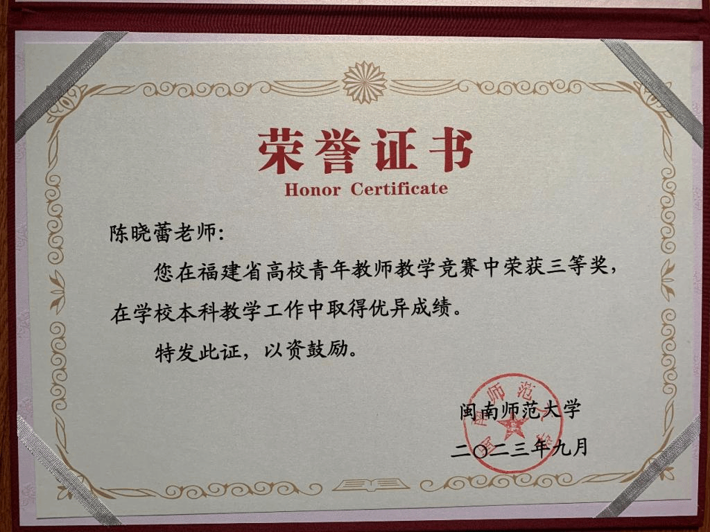 福建省高校青年教师教学竞赛三等奖