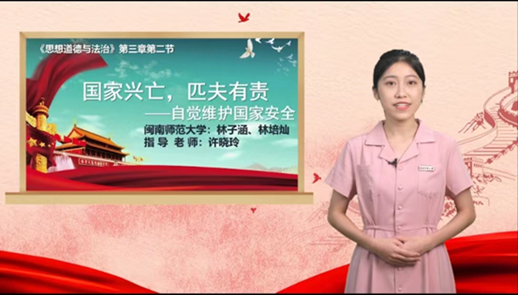 日前,由教育部主办、南开大学太阳成集团tyc41183承办的“青春献礼二十大·强国有我新征程”——第六届全国高校大学生讲思政课公开课展示活动获奖名单新鲜出炉。我院选送的由许晓玲教授指导、19级思政本科班林子涵和林培灿共同完成的作品《国家兴亡,匹夫有责——自觉维护国家安全》荣获全国本科组优秀奖。
