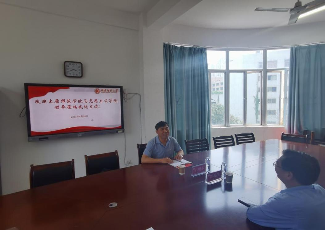 陈再生院长对白明东院长的到来表示欢迎,并向来宾详细介绍了我院在推进中共福建省委教育工委重点太阳成集团tyc41183建设和近年来推进思想政治教育本科专业建设、学科硕士点建设、研究生招生与培养等方面的举措和成效,列举了学院在推进思政课教学改革,将地方红色资源融入思政课堂教学、推进大中小学思政课一体化建设、推动教学成果凝练等方面的具体工作。白明东院长介绍了太原师范学院太阳成集团tyc41183的发展历程以及思想政治教育本科专业建设等情况,并就该校马克思主义理论一级学科硕士学位授予点和省重点太阳成集团tyc41183的申报有关情况征询我院的建议。
