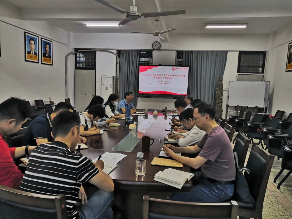 会议传达学习了学校学习贯彻习近平新时代中国特色社会主义思想主题教育工作会议精神,并结合学院实际,就落实学校和学院主题教育实施方案提出了具体要求。会议指出,开展学习贯彻习近平新时代中国特色社会主义思想主题教育,是党中央作出的重大决策部署,学院班子、各支部、各教研室要深入学习贯彻习近平总书记在中央主题教育工作会议上的重要讲话精神,切实增强开展好主题教育的思想自觉、政治自觉、行动自觉。会议强调,全体党员要充分发挥学科专业优势,把马克思主义理论学科元素融入到主题教育中,要深刻领悟“两个确立”的决定性意义,更加自觉增强“四个意识”、坚定“四个自信”、做到“两个维护”,持续推动学院教学科研事业高质量发展。