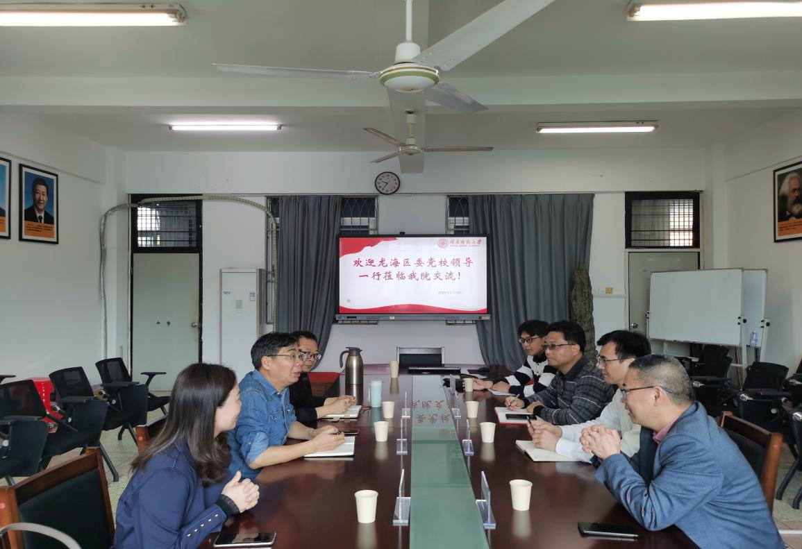 3月16日上午,中共龙海区委党校常务副校长林志良等人莅临我院洽谈合作事宜。陈再生院长、牛俊伟副院长、何孟飞教授、徐寿凤老师等人在综合楼中区404与对方进行交流。