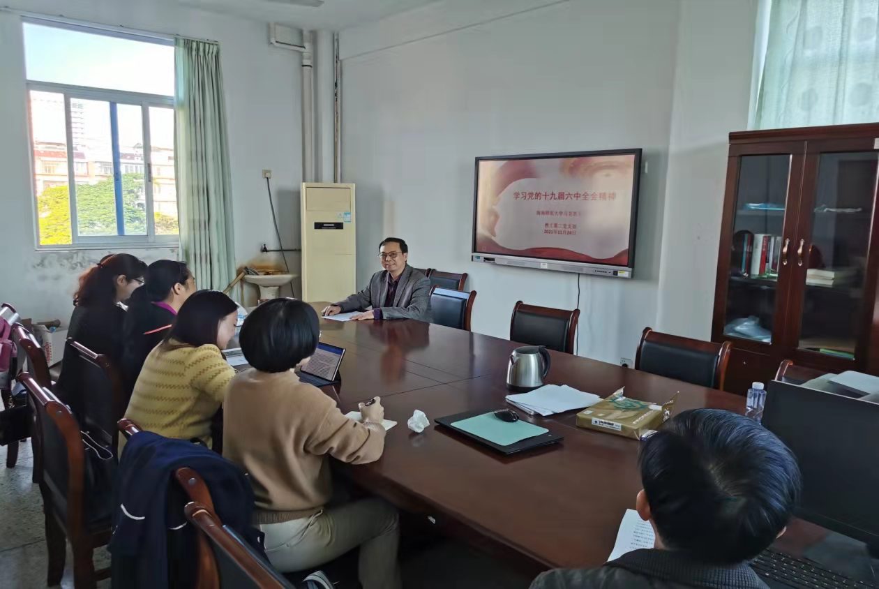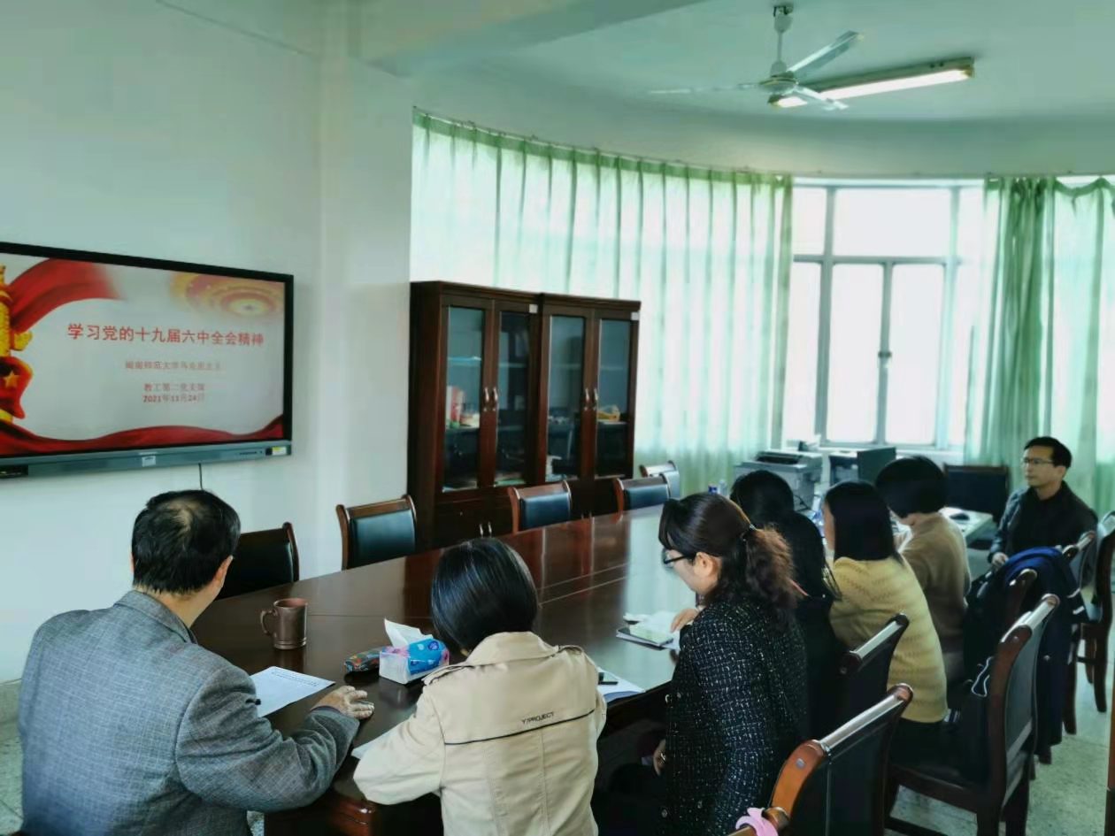 2021年11月24日下午,太阳成集团tyc41183教工第二党支部组织支部全体党员认真学习党的十九届六中全会精神,支部全体党员围绕十九届六中全会精神展开深入的学习并研讨如何将会议精神融入本科生的《思想道德与法治》课程的教学。