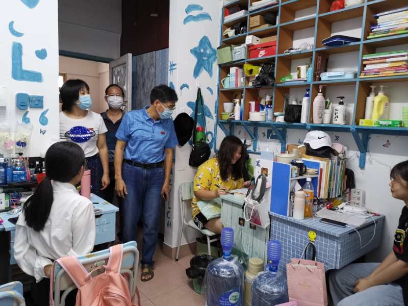 院领导在走访学生宿舍的过程中向学生详细询问了返校前的生活和学习情况,同时也对返校同学表达了亲切的关怀和慰问。院领导也向同学们介绍了学院针对疫情的有效防控措施,嘱咐同学们疫情期间要遵守学校的相关规定,时刻保持疫情防控意识,做好自身防护,共同打好疫情阻击战。