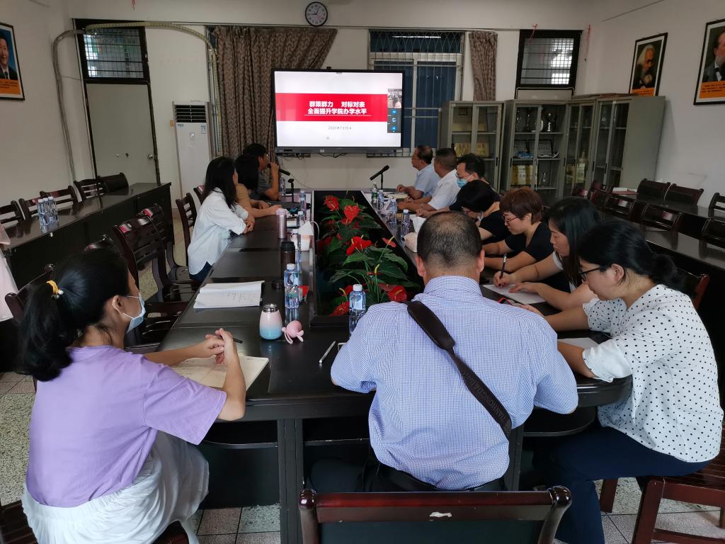 同时,他就学院标志性科研成果、课程建设成果数量、人才引进成效、横向经费额度、制度建设等方面存在的问题进行了具体剖析。明确了下一步工作思路,学院要紧扣学校党政中心工作,服务学校发展大局,深入贯彻落实《新时代高等学校思想政治理论课教师队伍建设规定》,建设一支政治强、情怀深、思维新、视野广、自律严、人格正的思政课教师队伍,不断增强思政课的思想性、理论性和亲和力、针对性;完成学院一级学科点申报和思想政治教育师范专业认证工作;通过线上招聘、转岗选聘等渠道配齐建强教师队伍;紧扣学校就业工作会议精神,全院教职工协助落实毕业生就业工作;不断完善学院问责条例、奖惩细则、聘期考核等制度建设;对标对表各自科研任务,力争完成学校下达的科研任务总量;严肃防控纪律,按照学校文件要求做好假期疫情防控,继续执行“零报告”“日报告”制度。