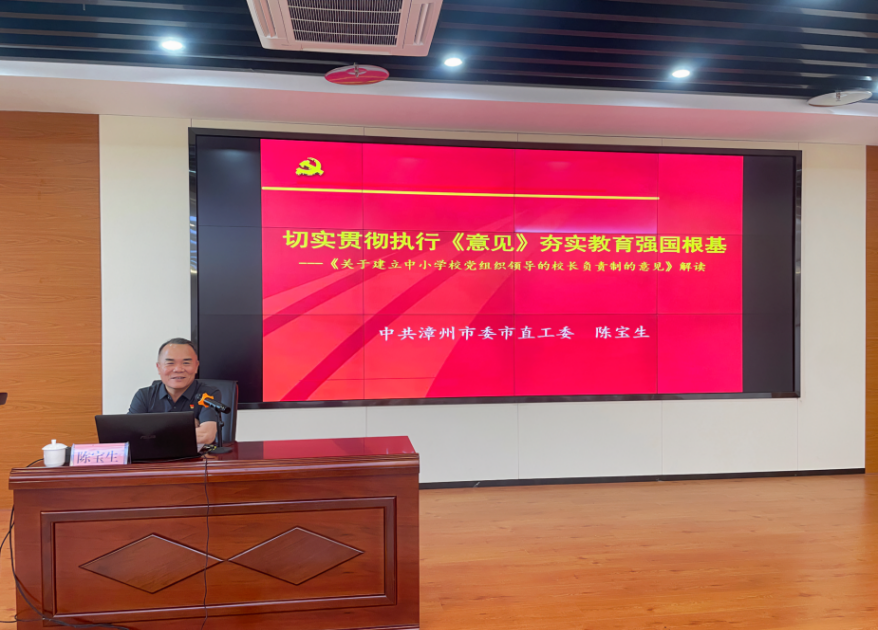 培训期间,tyc41183太阳成集团生物科学学院党委书记连恩德、中共漳州市委市直工委三级调研员陈宝生分别为学员们做了《关于新时代学校太阳集团创新的思考》、“切实贯彻执行《意见》,夯实教育强国根基——《关于建立中小学校党组织领导的校长负责制的意见》解读”的专题讲座。
