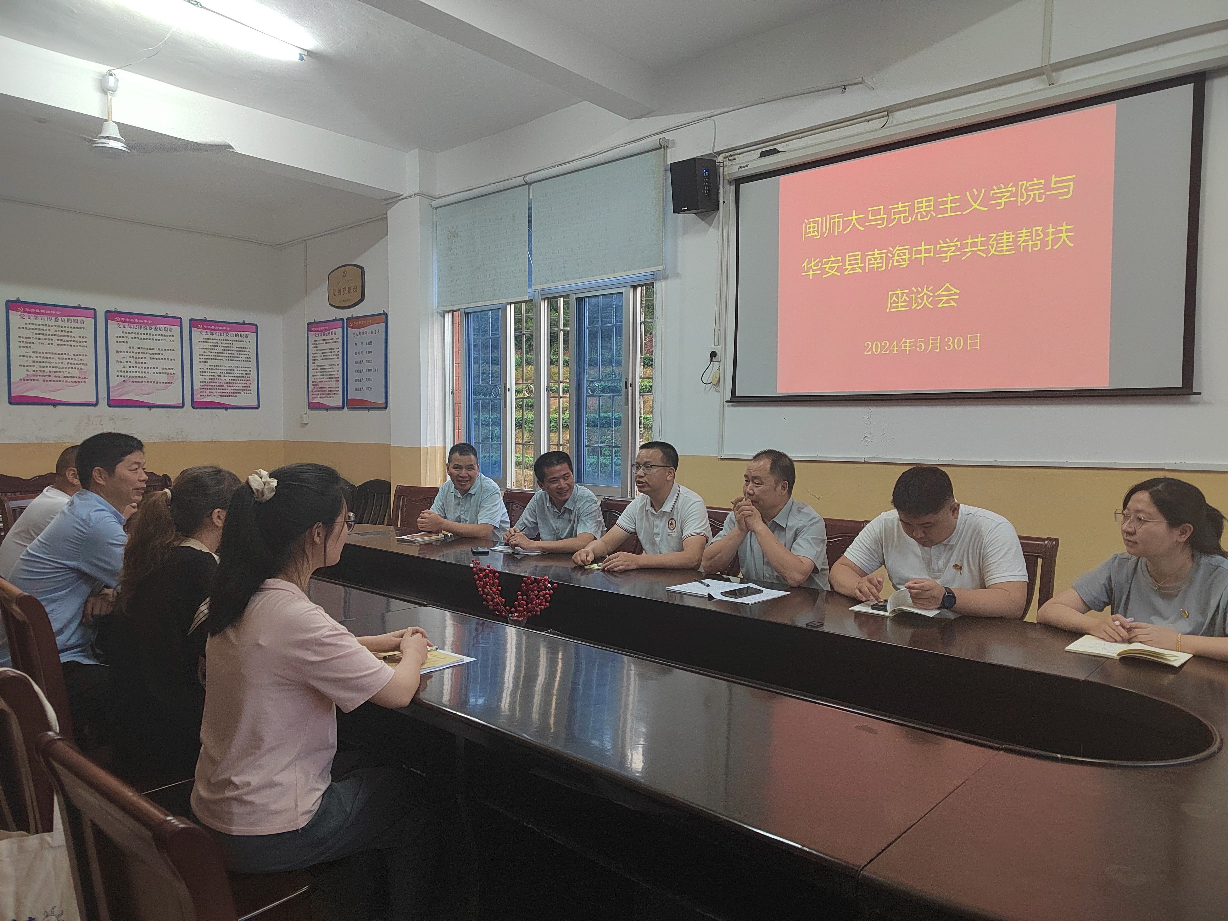 为贯彻新时代学校思政课建设推进会精神,扎实推进党纪学习教育,5月30日,我院赴华安县开展“思政领航·铸魂育人”——思政课“一体化”建设暨党纪学习教育系列活动。系列活动主要包括送培送教、党纪教育、党日活动、实习生座谈会等主要内容,旨在通过多维度、多层次的教育实践,落实闽南区域大中小学思政课“一体化”建设,推进我院与华安县南海中学的共建活动。同时,紧密结合党纪学习教育,实地重温毛主席对先锋村《一个整社的好经验》的光辉批示精神,开展“《中国共产党纪律处分条例》解读”主题党课,强化党员师生的纪律意识。院长陈再生、党委副书记邓战军、组织员陈精焕、思想政治教育系主任景云及副主任何铭灏,教师林建辉、余俊缘,辅导员沈书伊参加活动。
