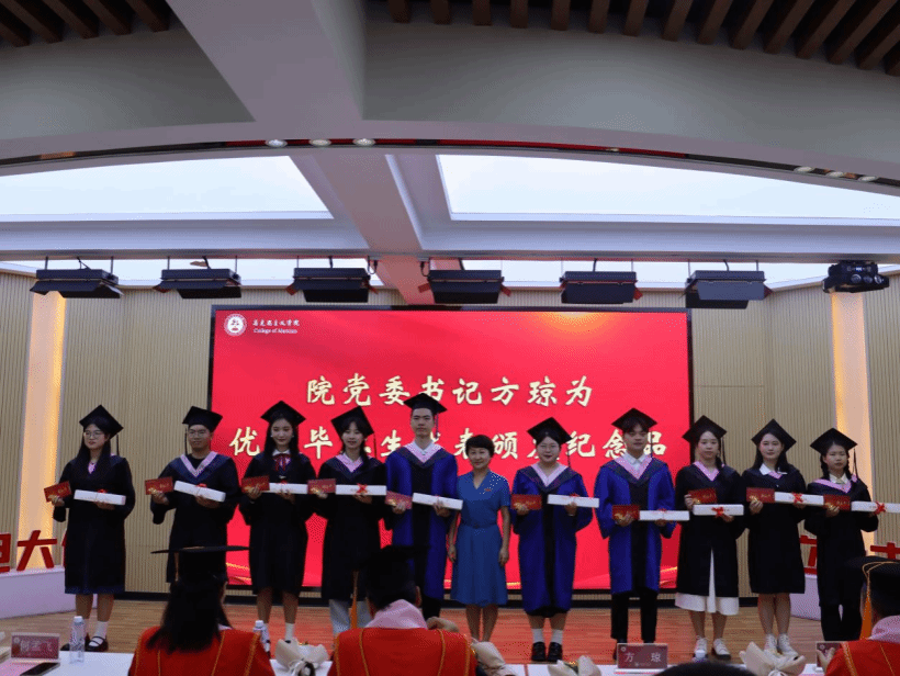 院党委书记方琼为考研之星等优秀毕业生代表颁发纪念品、专属校友卡。