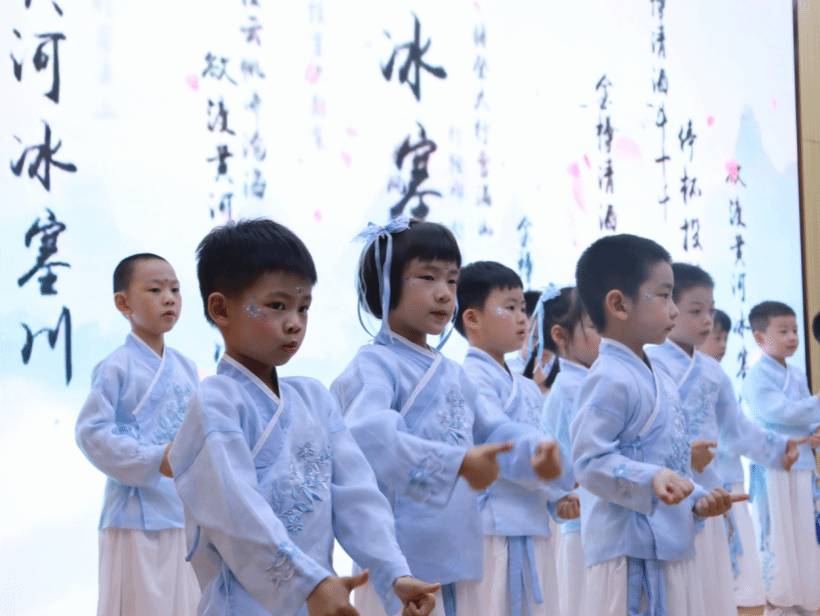 我校附属幼儿园为毕业生表演节目《中国字 中国人》。