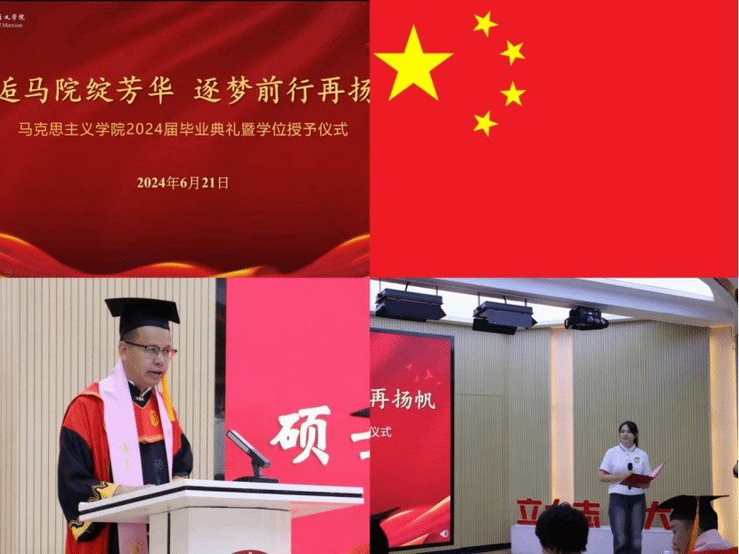 祝2024届毕业生一路生花!前程似锦!未来可期!历经千帆,归来仍是少年!愿每位马院学子,始终保持昂扬奋斗的前进姿态,只争朝夕、不负韶华,与祖国同心、同向、同行,在实现中华民族伟大复兴中国梦的新长征路上奋勇搏击,到新时代新天地中去施展抱负、建功立业,让青春在祖国和人民最需要的地方绽放绚丽之花!